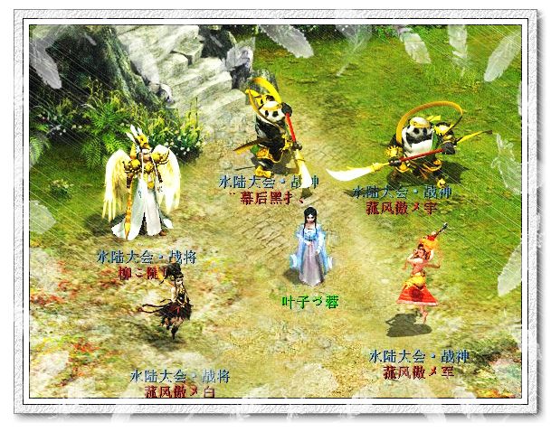 书剑合壁,水陆战神称谓来之不易。一路上有你,我们兄弟一起奋斗努力。 叶子:你好!请问有什么可以帮你的吗!? 玩家:我是书剑合璧的, 想找您做一篇水陆报道。 叶子:记者团有在更新服务器水陆情况呢。 玩家:不是啊, 我们有一个队伍的, 比平民玩家能高级一点, 打到水陆战神不容易,想找您给我们队伍做一篇报道。 叶子:你们队伍在区里等级怎么样 ? 玩家:比平民队伍强一点,算小资平均等级在175左右。 水陆成员: |