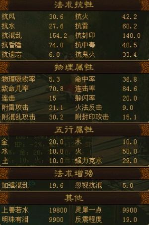 大力抗性:这个属性是对付魔转的大血人的连击附混装备,魔杀的血人血太多了,经常杀150回合,不过直接附混杀。 |