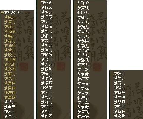 在大话这款男多女少的游戏里,女玩家很少,90后的女玩家就更少加,90后骨灰级女玩家就更加少之又少。 本文采访的是一个90后骨灰级女玩家和她组建了2年多到现在已有80多人的家族“梦家族” 下面为大家介绍来自莘莘学子的梦馨儿和她的梦家族 梦家族人员名单和部分成员合照