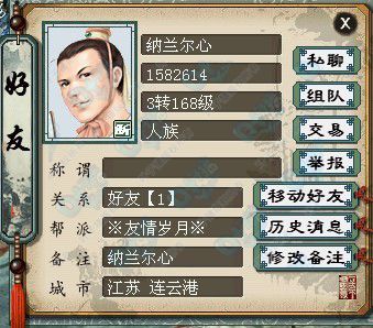 他,一个平凡的不能平凡的大话玩家。 他,一个陪着大话一起成长的逍遥生。 他,是服务器第一大帮的帮主。 他,虽然是第一大帮帮主,却没有神兽仙器,更不是人民币玩家。可他却带领着一群兄弟从一联打到了8联。 他,说他最宝贵的财富不是别的,而是他拥有一帮的兄弟姐妹朋友,都缘于大话。 他,说大话是他永远的寄托,他永远热爱大话。 他,从最初玩大话的稚嫩少年到现在的结婚为人父,依然对大话不离不弃。说他是个传奇人物,一点都不为过。 今天就让小暖带大家一起去认识下---紫薇宫第一大帮的帮主---纳兰尔心,大家都亲切的称呼他为“恶心”.看似是骂人,其实是全帮人对他的“昵称” 记者小暖简称记者。纳兰尔心简称恶心