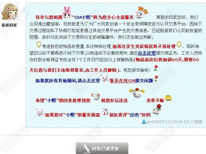 >>推荐阅读:烟雨斜阳:连环骗局导致玩家损失高达50万 自10月10日报道了烟雨斜阳连环骗,玩家集体损失50万人民币到今天已经过去了17天,花颜再一次联系了当时被骗的几位玩家。 受害者一: 采访内容: 叶子猪记者花颜:您好,我是叶子猪记者花颜,花颜在做上次连环骗的后续报道,希望您能配合花颜一下。 秋陌ツ望江楼:你好。 叶子猪记者花颜:上次在采访中您损失了一个镜子灵宝,现在已经找回来了吗? 秋陌ツ望江楼:找回来了。 叶子猪记者花颜:您损失的东西都已经找回来了,对吗? 秋陌ツ望江楼:嗯,找回来了。 受害者二: 采访内容: 叶子猪记者花颜:您好,我是叶子猪记者花颜,花颜在做连环骗的后续报道,您可以配合一下花颜吗? 情殇づ弑剑:好的。 叶子猪记者花颜:上次您被骗损失了多少,是否已找回? 情殇づ弑剑:没有,还差7亿 叶子猪记者花颜:其他的都找回了哪些? 情殇づ弑剑:找回了9.6亿 叶子猪记者花颜:也就是说您借给骗子的7亿没有找回,9.6亿以及冰块都找回来了,是吗? 情殇づ弑剑:是的。 叶子猪记者花颜:应该是因为那是借出去的吧,并不属于线下交易那种。 情殇づ弑剑:算了,不提了。 叶子猪记者花颜:下次一定要小心为好,没什么事花颜就不打扰您了,感谢您配合花颜的采访。 受害者三: 采访内容: 叶子猪记者花颜:您好,我是叶子猪记者花颜,在做连环骗的后续报道,希望您能配合花颜一下。 游·龙:可以,你说。 叶子猪记者花颜:上次的被骗您损失了多少,又找回了哪些? 游·龙:我就5的OS子虚猫。都回来了。大话币就那几亿就没追。 叶子猪记者花颜:好的。没有别的了吧? 游·龙:我队友的一个被恶意交易的强龙男魔号也回来都没少。很庆幸了。 叶子猪记者花颜:强龙联系我了。找回来就好。 游·龙:那小子乐坏了。那先就这样吧。我这边有新动态了。随时联系你。 受害者四: 采访内容: 叶子猪记者花颜:您好,我是叶子猪记者花颜。花颜在做连环骗的后续报道,可以配合花颜一下吗? 强·龙:你好。 叶子猪记者花颜:在上次报道中,您损失的都找回来了吗? 强·龙:我们的号快要回来了。 叶子猪记者花颜:那就好,没什么事花颜就不打扰您了,您把客服给您回复的给花颜截图一下。 相关截图: 在上次采访后还有一名玩家联系了花颜,说他在骗子疯龙手里购买的物品被找回。由于是线下交易,网易只是对物品进行找回,玩家无法得到补偿。 受害者五: 以下是花颜与玩家的采访内容: 叶子猪记者花颜:您好,我是叶子猪记者花颜,请问有什么事吗? 下一秒恋爱:我也是烟雨斜阳的受害者。 叶子猪记者花颜:您来详细的说一下吧。您有没有去客服进行申诉。 下一秒恋爱:我是线下买的,GM不管,警察也不管。 叶子猪记者花颜:那你损失的多少,然后有没有相关截图。 下一秒恋爱:有截图。大概买了4万左右的东西吧,一部分是拿DHB买的,1.3万是拿RMB买的`!是他们帮主游龙担保的,买个 8个神兽+ 几个神兵。 叶子猪记者花颜:之前花颜也联系游龙了,他说他并没有担保过任何,有可能是他唱的双簧。 下一秒恋爱:我给你找截图。 叶子猪记者花颜:好的。 下一秒恋爱:还要什么? 叶子猪记者花颜:您和疯龙的,还有您买藕丝的汇款有吗?钱打过去,没有给你藕丝什么的? 下一秒恋爱:给了,但是被追回了。8个神兽+好多神兵。 叶子猪记者花颜:好多神兵是多少阿? 下一秒恋爱:我去看看宝阁的图。 叶子猪记者花颜:不是线下买的吗?怎么还有藏宝阁的图? 下一秒恋爱:我挂在宝阁被收了,由于游龙说出了事他赔钱,所以就放心了,但是,这事过后他说是骗子上的他的号。还有些东西没来的急上宝阁就被GM收了。那个猫是子虚的,好像是游龙的。 相关截图: 花颜有话说: 还有很多玩家花颜没有联系上,玩家:坏男人向花颜提供消息说他们都已经将自己损失的找回,在这里花颜希望大家要杜绝线下交易,防止自己再次收到不必要的损失。在交易的时候一定要小心,希望大家可以通过正确的渠道进行交易。同时感谢好心玩家提供给花颜消息,也感谢玩家配合花颜的采访。希望大家可以多多关注叶子猪,支持叶子猪。 <<<点击进入大话西游2论坛讨论>>> 更多游戏资讯请访问叶子猪游戏资讯中心:http://news.yzz.cn/ |