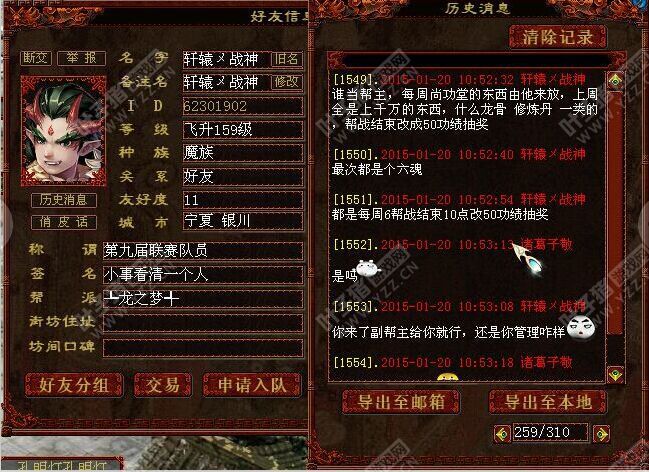 之前报到过一篇被骗帮派而且被T出帮的,还被刷铃铛骂骗子的事件,时隔多日,这深受打击的朋友再次联系我们叶子猪,告知我们目前他帮派的现状,大家一起看看这朋友现在如何? >>推荐阅读:大话西游2记者快报:更换帮主需谨慎换完被踢出帮 诸葛子敬 :叶子猪的记者,您好 叶子猪丨豆豆:你好,很高兴你再次来到联系我们采访,你是要分享下现在帮派事情还是,之前帮派的事有新的进展呢? 诸葛子敬 :今天找你就是想给你说下帮派被骗后的感想与怎样管理帮派 叶子猪丨豆豆 :相信上次的事对你不多不少的影响,不知道你现在的想法这怎样的呢? 诸葛子敬 :自从我的帮派赤血鬼影被骗走后,一个星期内,各个大的帮派的帮主都在拉我去他们帮派当帮主,我问他们为什么,他们都说不会管理帮派,知道我会管理帮派。当时也是睡觉都睡不好的哦! 叶子猪丨豆豆:这是其他帮派的帮主邀请你的?还是什么样的情况呢? 诸葛子敬 :是的,当时被骗后 一个星期内都是有好几个帮主邀请我去他们帮,当帮主帮他们管理帮派的 叶子猪丨豆豆: 哇,厉害!那你当时怎么想,怎么抉择呢,毕竟不是一个帮派这样邀请你的。 诸葛子敬 :当时我拒绝了,毕竟不是自己发展的帮派没有乐趣。 以前的帮派已经要不回来。如今我花钱买了一个帮派,现在已经打到甲级帮战,还要感谢我平时的朋友与原来帮派人的支持与厚爱。今天找来记者想和大家分享下我多年来的帮派管理理念。当时他们啦我的时候有很多人都是因为不会管理帮派想邀请我去的。 (得到其他帮派的欣赏,邀请过去当帮主) |