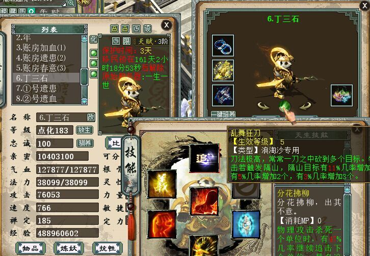 每个服务器都有着这样一群人存在:单挑一族。再牛比的单挑男也会挂,没有谁敢说自己是不死之身,但却在每个服务器里面都会有这样一个人,他被大家称做“单挑王”。 本次叶子猪给大家介绍大话单挑人的巅峰人物——深谷幽兰,种族巅峰赛的冠军,是一个超级爱玩单挑的男人,同时分享下他的百万物资(当时看到物资简直要闪瞎了我的钛合金狗眼啊) 服务器:再爱一次 名字:深谷幽兰 ID:9889999 爱好:专注单挑五百年,喜欢单挑找我战 男人的玩法有很多,有的人喜欢玩团队型,有的人喜欢玩单挑型。深谷幽兰选择了后者,在单挑之路走了多年。 像种族比武很多都是靠几率,现在把舍身灵宝改了,而参加的大部分玩家大多数都是血人,打得有些保守且打紧张,有时是发挥不出来水平。 像种族赛这种,个人感觉攻击灵宝比较好些,如果是皇宫金击子比较好用些,种族赛很容易被几率,2回合直接带走的,因为宝宝不能抽法 深谷幽兰套装搭配为灭神+铃音,灭神+见龙,灭神+破军,灭神+下雪,破军+下雪,看对面敏和血有多少了,主要就是灭神+铃音,灭神+见龙,破军+灭神,这三套用的比较多些。 下面是深谷幽兰的配置展示,无论是装备,召唤兽还是灵宝,绝对让你大饱眼福!