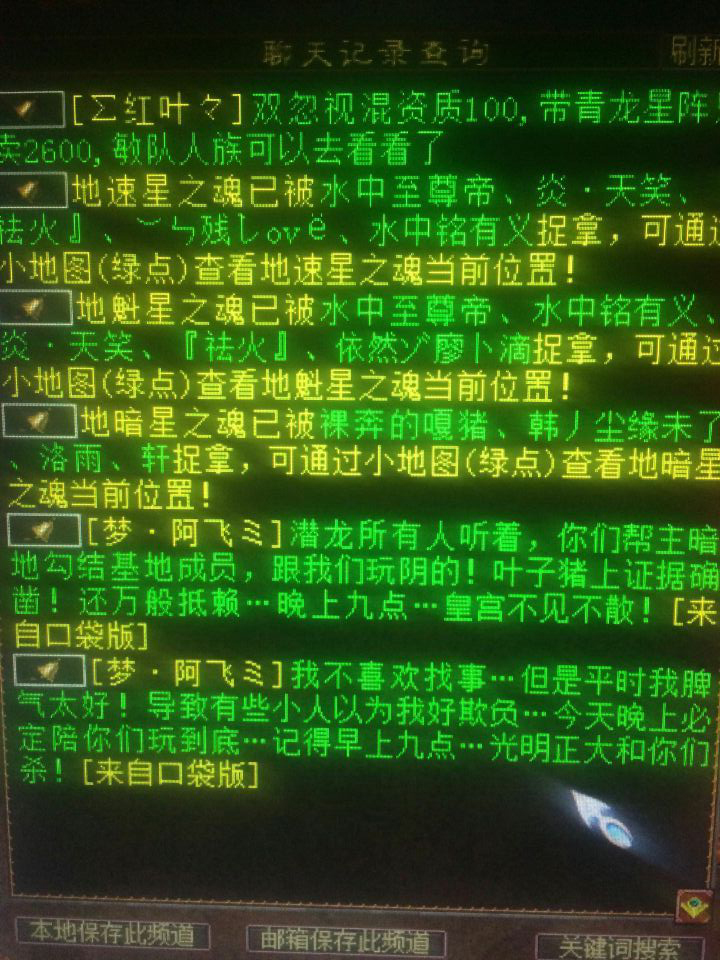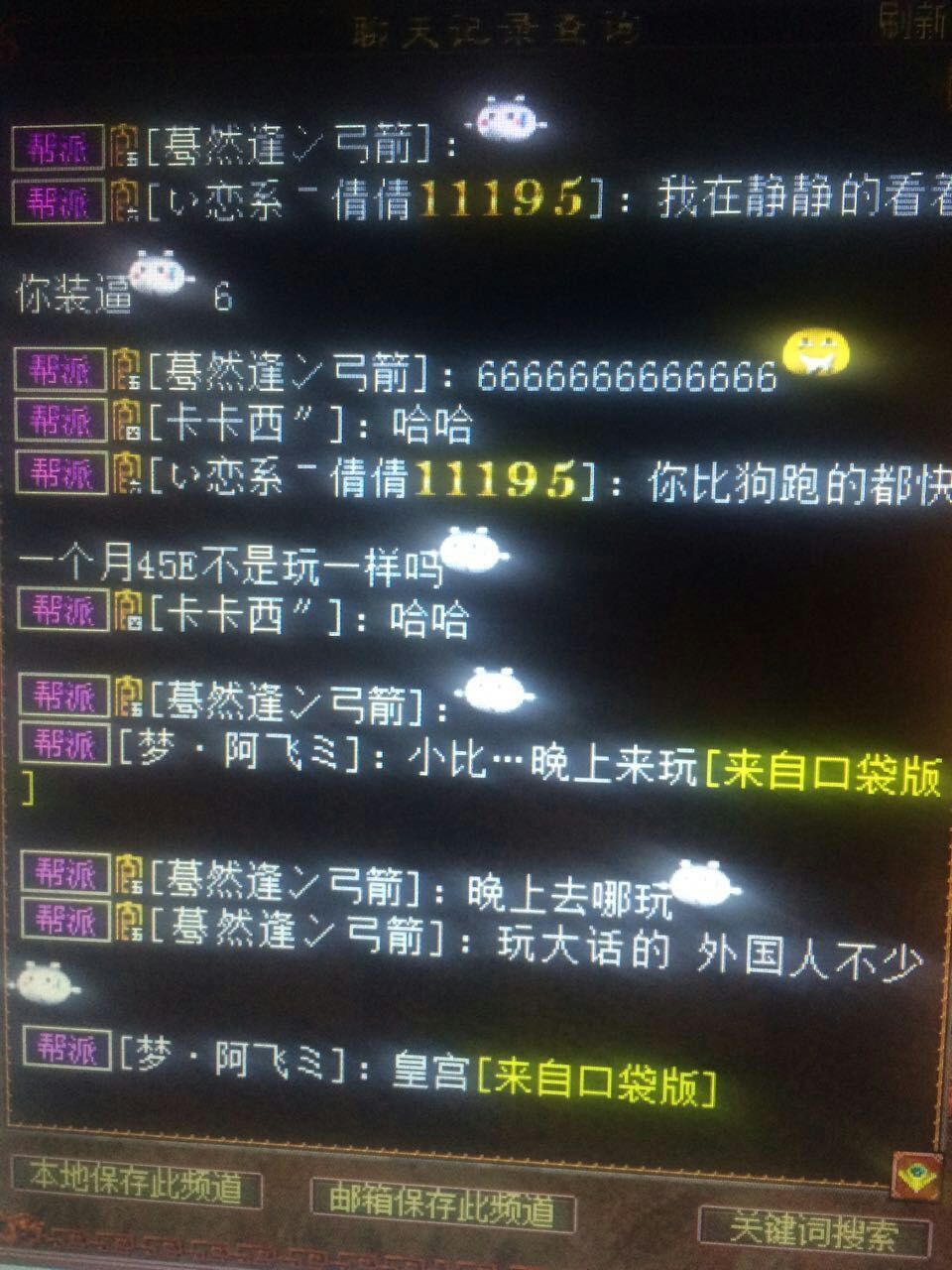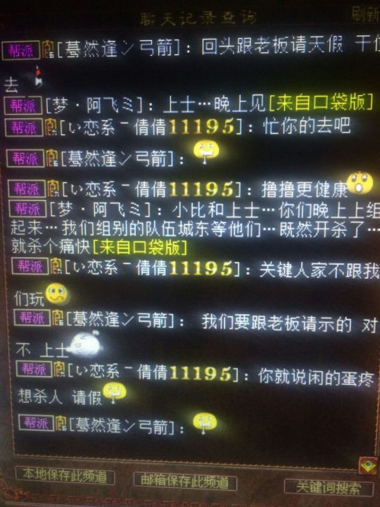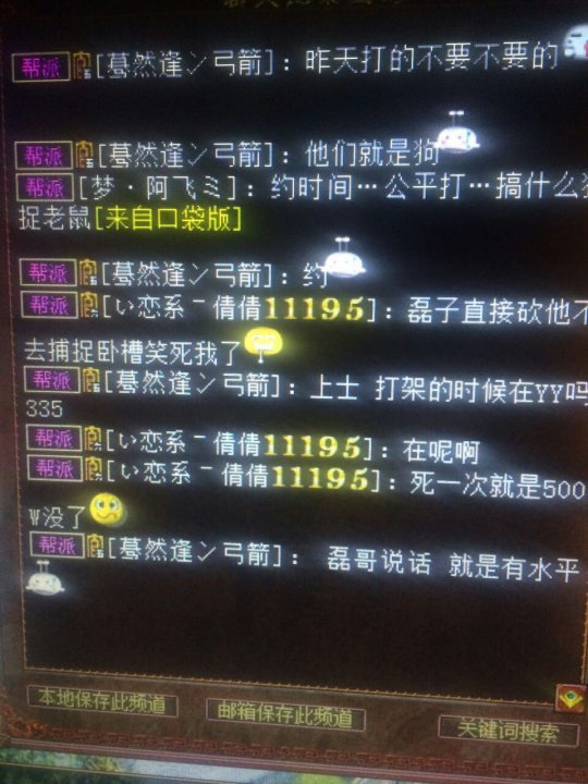 宇凡提供晓风残月帮派频道对话及铃铛截图