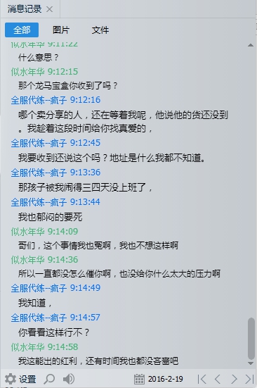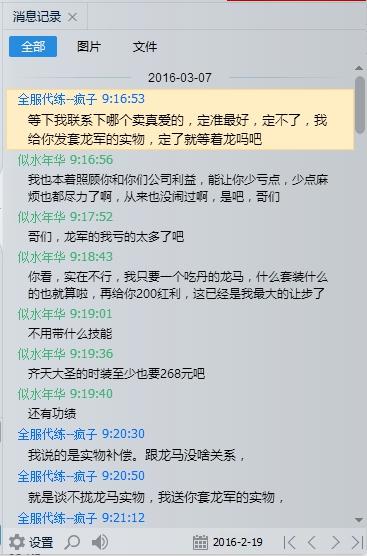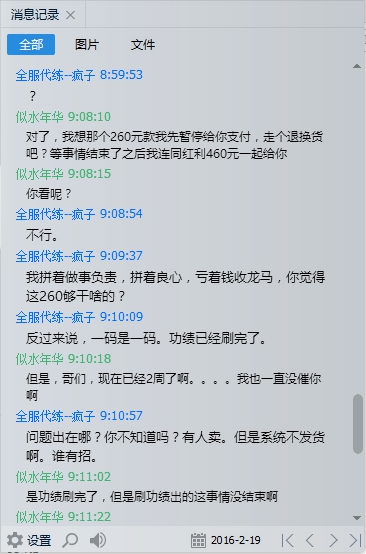 在代练拿走号主人获得的龙马事件糟叶子猪连续报道后,账号的主人再次现身,请求叶子猪报道此事件,究竟有何端倪,让我们一起来看看! >>推荐阅读:这龙马归谁?代练上我号获得龙马鎏金宝鉴 前面的资讯不少玩家纷纷留言,争论龙马的归属权,有的认为是带练的,分不分红给玩家是带练自愿的,也有玩家主张谁的号就是谁的,那么龙马到底该归谁呢? 事件描述: 玩家似水流年找带练刷功绩,带练充值点卡刷了鸿运礼盒结果抽到龙马,带练在未告知的情况私自填写了自己的地址。玩家上号查千秋册发现有个中鎏金宝鉴的功绩,带练以各种理由搪塞,玩家觉得我和代练各充了400点点卡,总共800点,就算不是代练,是好朋友,那得到的奖励怎么也该平分吧?所以在一怒之下申请退了某宝支付的费用,可是也弥补不了号中一个龙马的损失。 玩家讨论: 此事报道后,引起了玩家激烈的讨论,玩家自分两派,各有观点,那么你怎么认为呢?可以将自己的观点回复在本文页尾评论区! 代练回应: 在初次报道本事件后,代练也联系到记者为自己喊冤,声称买鸿运礼盒的40块点卡是他自己充的。 “我答应给你刷3000点功绩,也刷到了,那我为了给你刷功绩自己掏钱买鸿运礼盒,那得到的龙马当然应该是我的!”代练回应道。 主人回应: 当账号主人得知此报道后,也来找记者诉苦,希望澄清此事。 1、关于疯子口口声声说的那买鸿运宝盒提升功绩的400点点卡是他出的,这个完全是瞎说! 因为那天上午开始,他就开始QQ发消息及打电话,说让我买鸿运宝盒,这样能够更快的凑足3000点千秋功绩,他也好快点交工,一直到下午他说买鸿运宝盒的钱可以一人一半,他出一半的钱,我也出一半的钱。 于是他2016年2月25日13:18分开始他充值了200点点卡(他充值后账号余额是282点),然后又在13:56分冲了200点点卡,而我是在14:06分冲了400点点卡,所以总共我和他一共充值了800点点卡,到14:23分他把我号下线,我账号点卡余额为127点,他怎么能够无耻的欺骗大家点卡都是他出的呢?! 而我发现他在给我说刷满3000点功绩后过了一段时间,在14:24分又开始要我的将军令,而且很急迫,在QQ中连续发了两个“窗口抖动”! 我就奇怪一点,3000点功绩刷满了,你为什么还要上我的号呢?!有什么理由呢?其中有什么问题,请大家仔细对比一下时间点就明白了! 2、再说,这就好比“大话西游2代练升级,说好了点卡费用全包,其中所得全部归雇主所有,并3天后交货,到第三天突然说点卡不够了,让雇主充点卡,雇主按照合同约定不充,因为合同全款已经包含点卡钱了啊,然后他为了能交货,自己出钱完成最后的代练,在这个时候得到神兵,你说归谁啊? 代练过程中所得都是给雇主的,我一面之词如果不足为信的话,那么大家可以去某宝问问其他专业代练,看看是不是这样! 3、另外,当时我问他开箱子出了什么,他其他都说了,但是龙马没有说,而且还卖了我一个永久的装饰品!” 4、关于“全服代练-疯子”所说的“我改过几次地址”就更加可笑了!难道他不知道“《鎏金宝鉴》改地址并重新填写新的收货信息是需要通过客服的吗!?”,而网易GM每次处理完问题都有会记录的,这也是网易在这次事件中“挺我”的一件事吧!不多说了,请大家看图一切都明白了!污蔑我想讹他龙马,还自己再去网易通过改地址再去得一个龙马,这种说法也太搞笑了吧! 5、关于你说我讹你一个1500元的6开龙马,我真不知道该咋说你!你真是信口胡说!直接看下图吧!你那里不是也有聊天记录吗?你直接发群里的朋友不就好了啊!对了,1500元买个6开龙马,你当别人都和你一样说话不用脑子啊! 商量买个四开龙马赔我 6、人们很多时候是沉默的,但是我相信大多数人心里是明白的!能真心支持我! 玩家的大话客服提单和回复: 玩家和代练商量各充400点点卡买鸿运礼盒的对话: 某宝代练店铺截图: 玩家账号点卡充值记录和信用卡账单: 大家可以核对一下消费明细中的仙玉消费,明显超过了400点,所以买这些礼盒我也是花了点卡的。 退款申请: 账号主人想,退款申请也是一个证明,“如果这件事情真的是我的错,龙马就应该给代练,那么我想问问某宝不会判断吗?是我的错为什么还给我退款成功了?我发起的退款申请如果不符合规定,那卖家不会驳回吗?不会找小二来处理?”账号主人说道。 代练的店铺