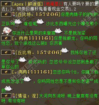 都说买卖不成仁义在,开兰博基尼的神豪玩家宝哥相信大家对这个名字不会陌生了,游戏里的绯闻八卦络绎不绝,与他相关的资讯彰显此人个性。 这次问题出在宝哥的队友丘比特身上,丘比特与卖家冉冉谈好价格准备交易,一句不要了结束交易 诚信何在?卖家冉冉拆除传世损失由谁买单,与之理论,丘比特竟反骂卖家故意拆除传世配饰,言语不堪入眼,威胁加警告谁敢带升级一并杀害,果然,与土豪组队的都不是好惹的 一生有你玩家:冉冉 正文采访 叶子猪记者:你好,我是叶子猪记者,请问有什么事吗? 。冉冉:你好,我要曝光一个人渣 叶子猪记者:能说说是怎么一回事吗? 。冉冉:对方是宝哥的队友丘比特,他要收披风我发图,他和我说好价格要了,因为我的披风打传世了怕他变卦,再次找他确认要了我再拆,他说嗯,于是我拆了,然后他说不要了。 叶子猪记者:那有点过分了,没诚信啊, 当时说好为什么突然反悔? 。冉冉:我不知道,我刚移民来就碰见这种垃圾。 叶子猪记者:就因为这件事么,他是宝哥队伍里的吗?最近好像有不少玩家反映关于他们队的问题啊。 。冉冉:传世拆除,最主要的是被人玩的感觉你知道吧,我提前问他确定不确定,他说了恩我才拆除的。 叶子猪记者:那为什么骂人啊?是他先骂你的吗? 。冉冉:传世拆了他还说我的错,我火了就喇叭上了。 叶子猪记者:其实如果和平解决也不会生这么大的气把,是因为他看错了而且态度不好吗? 。冉冉:他还说我故意拆的, 聊天记录时间都有,还说我不是人。 叶子猪记者:这么嚣张? 。冉冉:主要是曝光此类人装大款的人品,他还说是我的错,你能忍吗? 叶子猪记者:主要对方态度问题让你愤怒吧?也的确一般正常人有点无法接受。 。冉冉:人家现在还说是我的错,后面就翻脸骂了 玩家提供截图,宝哥加入了骂战 铃铛截图 铃铛不难看出,买方丘比特表示披风并不是他要收的属性,宝哥则跳出来威胁偷袭,冉冉作为女玩家在言语对决上永远是处下风的。更有玩家提问冉冉不发披风属性就想卖? 为此冉冉提供了她与丘比特的对话截图 尾音: 交易难免会发生不愉快的,曾经就有不少玩家反应交易产生恩怨的问题,又例如东西明明摆在藏宝阁,对方要求游戏里交易,东西取出来了又反悔不要了等等。很多时候也希望玩家之间能守住诚信,各退一步海阔天空,女玩家也许在游戏里没有特殊待遇,但是无下限谩骂绝对不是一个男人的涵养。 叶子猪记者未央报导。 <<点击进入大话西游2论坛讨论>> [编辑:一笑奈何]