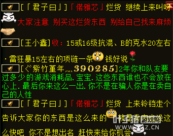 正所谓一日夫妻百日恩,咳,虽然用在游戏里不太合适。如果是游戏夫妻,对方是个女玩家,把处了2年的队友和结婚对象全部骗了,实在令人齿寒。 这个女骗子就出在一生有你服务器,前几天记者小黑就听说这个事,不过每次时间不对都没遇到当事人,这次正好有玩家联系记者团,小黑火速赶往一生有你。 我们先看看铃铛部分截图: |