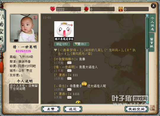 自从大话的朋友圈多了红包功能后,不少小伙伴拉赞或者点赞都是玩得不亦乐乎,柒柒甚至看过有点赞领5000W红包上系统的玩家,不过对方就这么一个红包包,好可惜。 不知道其他服务器的空间红包是怎么个情况,不过在月光爱人服务器每天系统都刷刷刷有红包,例如以下这位散财小童子。 柒柒也是某天看系统按耐不住,这必须加对方好友去他空间点赞!嘻嘻~不过点了几天都没抢到红包,可想而知我的人品有多差。有天总算被几率也领了120W的红包,立即好几个小伙伴包括不认识的玩家加我好友要对方ID。 进入采访 叶子猪柒柒:你这是在空间放了多少钱? 惜一世英明:3000W,99个红包,有时也会放4000W。 叶子猪柒柒:你放这么多干嘛,每天看着系统,我这个空间就只放100W红包的为你点个赞。 惜一世英明:这东西无所谓了,重在开心。我也没有太多时间上,上一会也就发发红包,然后挂机了。 叶子猪柒柒:我之前看你空间照片被和谐了。 惜一世英明:是的,我想要前面那朵小花。 这里科普下他所说的小花就是在空间放一张照片+我是大话佳人,点赞够66,通过可获得大话佳人这个称谓,同时空间与人物都有特效,如下 叶子猪柒柒:很多男玩家都通过大话佳人了,只能说你发的美女照太假的 惜一世英明:的确很多男玩家发假照通过大话佳人了,就当个乐子吧,游戏哪可能这么多美女玩家。 叶子猪柒柒:像最近的无差别PK赛你有报名吗? 惜一世英明:没时间参加,基本比较忙,如果这些奖励能够兑换成平常任务奖励丰富点,我相信更多玩家乐意。我现在PK比较少,基本就打打帮战吧。 叶子猪柒柒:看了下你的配置,龙马的翅膀搭配这个颜色挺美的。 惜一世英明:龙马原本是金色,昨晚换成这个颜色,我站街有2200的敏,现在用的是4阶,还不如带神兵呢,我准备换成5阶吧,我号没什么东西,不如别人一把6阶,自己玩的开心就好。 叶子猪柒柒:玩游戏不是投资越多越好,每个人有不同的选择嘛,可以了解下你的游戏生涯吗? 惜一世英明:我从宝宝没内丹就开始玩这款游戏,断断续续换了不少号吧,最老的是玄婴洞,还有一生一世,各种区玩。月光爱人这个区我玩了1年左右。我最早玩的时候网吧的人基本都是玩大话,初一花了30块钱买了个战神女娲非常激动,上学都是把生活费省下来玩大话。我以前都是带猴子和女娲的,印象最深刻的是把得来的神兽放生了。 叶子猪柒柒:把神兽放生是怎么个情况? 惜一世英明:毒蛇、海龟,都是小神兽,以我现在回想,它们应该都是神兽…… 叶子猪柒柒:是不是系统给你,那时候你还奇怪系统怎么给堆垃圾宝宝所以放生? 惜一世英明:是的,因为我只带女娲和猴子,所以放生了。 叶子猪柒柒:回想心都会隐隐作痛吧,这让我想到以前我朋友,他有只抗物理的龟丞相有玩家出300W游戏币,我们卖掉了还以为赚了,现在都知道,普通的龟丞相是不抗物理的…… 惜一世英明:已经这么长时间了,哎。以前转生都要挂时间宠的,不像后来出现帮派可以训,又直接不限制时间宠满级才能转。我们网吧有人要3转吧,直接把号挂在洛阳车夫,在网吧一挂就十一个月。现在玩大话的基本还是老玩家,基本年龄都在25岁以上。我想吐槽下前几天洗出个90资质双忽视震慑的星卡,又让我洗了,把我给郁闷的。 叶子猪柒柒:可以尝试联系客服帮你恢复的,我朋友的星卡被恢复了。 惜一世英明:差不多一个多星期吧,能找回? 叶子猪柒柒:那肯定不行,必须是当时发生就立刻联系客服,有希望恢复,过这么久了肯定不行。 惜一世英明:现在游戏的好处就是可以找回东西了,原先是不可以的,游戏还是比较人性化了。回想洗星卡也很好笑,一笑而过吧。现在基本都是老玩家,有钱投资了,把儿时的梦想实现。 叶子猪柒柒:那么你的梦想是什么呢? 惜一世英明:已经完成了甚至超越了,我曾经的梦想就是能玩个3转号 叶子猪柒柒:恭喜你的梦想达成,感谢你接受我的访问,祝你游戏开心。 惜一世英明:那把你的空间分享给我,我帮你点赞。 叶子猪柒柒:哈哈,客气,不用了,我的已经点满了。 再次科普下,大话空间秀每天点赞最多一百次。 翻页分享下他的部分配置