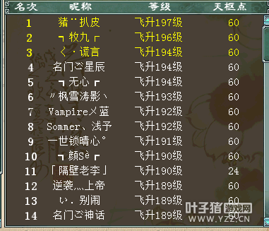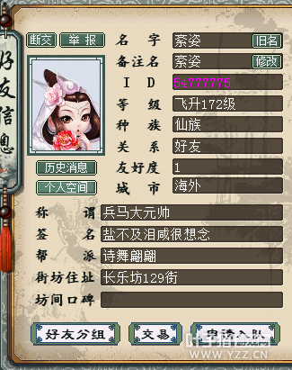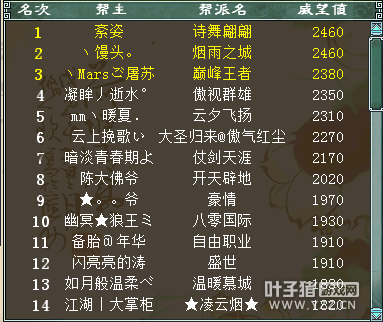紊姿 :嗯,是啊,大号带练的多,要升级,我玩小号就打理帮派。 叶子猪小黑:你在一生一世做帮主,在流霞古泉是帮主,现在来相爱一生也是帮主,而且帮派打理的这么好,作为一个男人,我由心佩服你。 紊姿 :我玩大话4年了,有3年多都是做帮主,确实挺累的,不过帮里很多人都是跟着我来回移民,不弄个帮吧,感觉大家都在流浪,到处奔波的。弄个帮派,工作之余上来玩,能在帮里吹牛逼逗乐。 叶子猪小黑:之前在流霞古泉好好的怎么去了一生有你? 紊姿 : 去一生有你只是无心那个号的队伍去,队长说跟朋友PK几场,到时候再来相爱一生跟帮里人汇合。