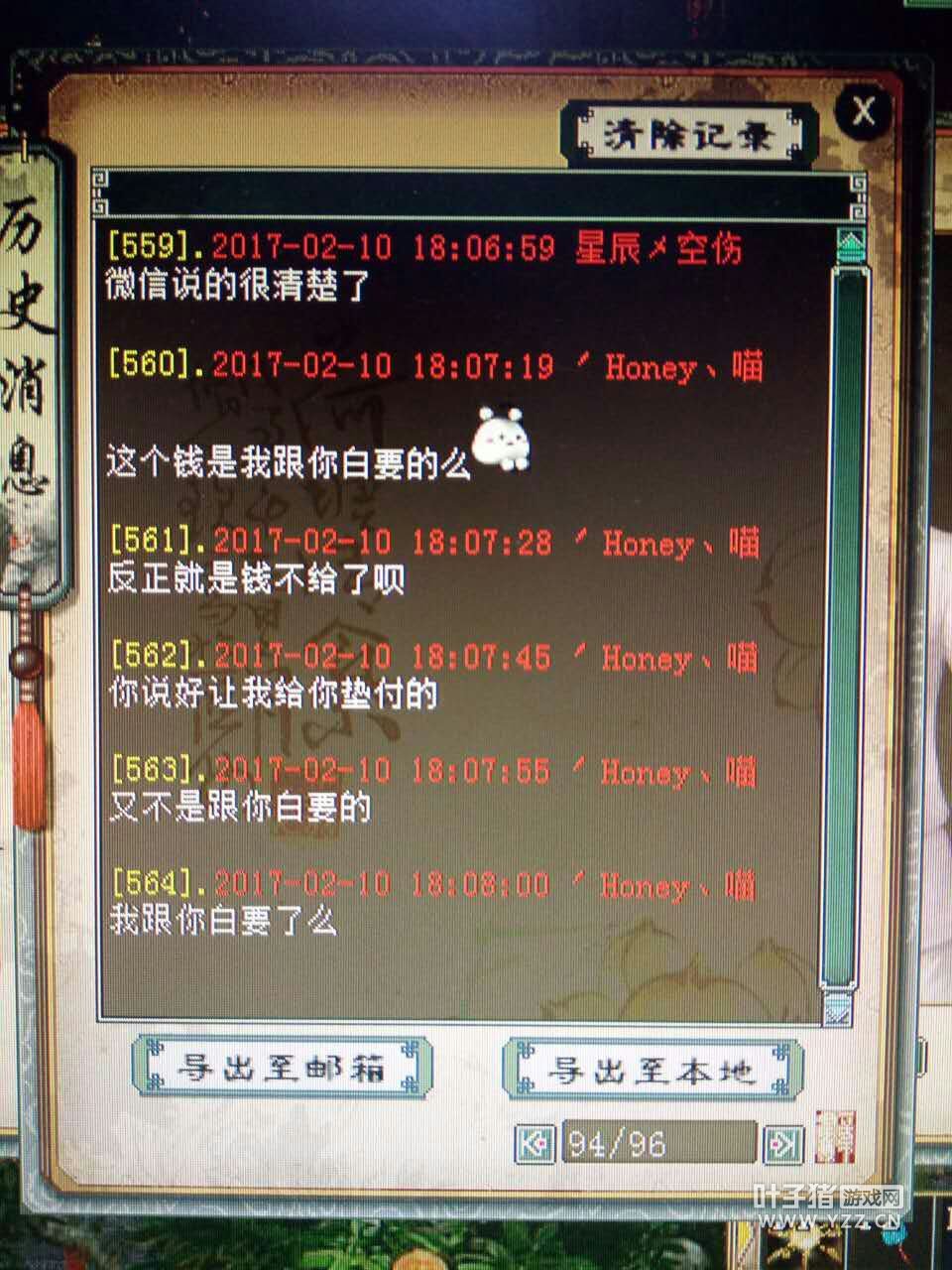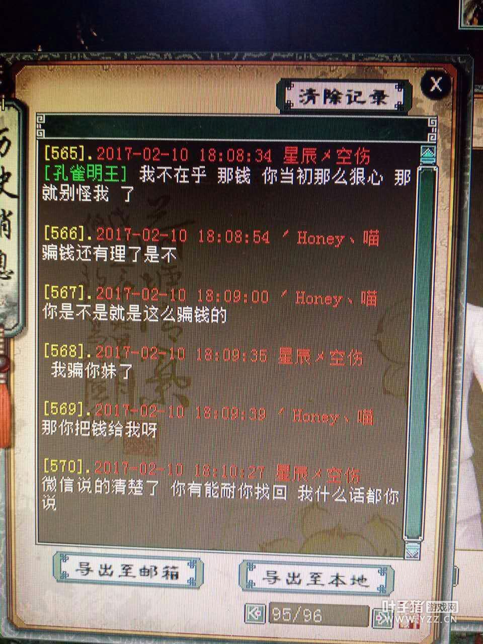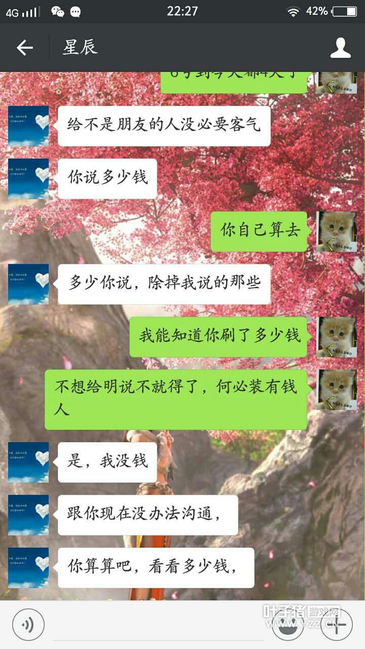 了解来龙去脉 叶子猪小黑:你好Honey,叶子猪记者小黑,看见朋友给我传的传音截图,听说你被朋友骗了? Honey:5号的时候星辰空伤让我帮他弄装备,晚上有个卖忽视强星卡的他已经睡觉了,我给卖家说第二天点,到了第二天我联系星辰空伤,他让我帮他点了。我当时从藏宝阁买了白菜放了2.8E到他号,然后在集市买了星卡。因为我在做直播的时候他开了守护,没事就刷礼物,我想着他应该不会骗我。就帮他垫付了这个钱。