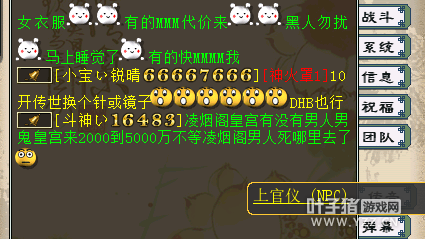 叶子猪吕轻侯:一对于奶爸今晚的爽约,我觉得因再宽容下,等等明天或者合适的时间再另行沟通,当然了,如果过几天你要真的忙起来了代理给你升级没空去皇宫PK的话,我想奶爸也可以理解你的了。总之还是开心大话,激情PK为目的,不然投资那么多玩的憋屈也没意思不是吗? 斗神い:希望大家都能理解,这个不是怕不怕的问题,有时忙于工作家庭没上号不能成为他所说怕的理由。他没空是正常的,我没空是怂逼的,我一直纠结在这一点上,所以这2天火气大点 叶子猪吕轻侯:春天快到了天干物燥的,脾气急点可以理解#23.多吃蔬菜多喝水保持心情平和有助于春天养颜美容#23.希望你每天美美哒,心情爽爽哒,皇宫战绩棒棒哒#23 斗神い:谢谢记者听我把事情经过啰嗦出来,估计别人听不来我这么啰嗦的人#86这个估计能让你忙一大会了#86 叶子猪吕轻侯:客气客气,大家开心游戏才是正事,要是晚上你和奶爸能皇宫PK,明天告诉我战果咯,最后祝你皇宫也有理想的成绩,玩的开心 斗神い:谢谢 尾音 昨晚在凌烟阁皇宫斗神与奶爸PK战绩是五比五,真真是棋逢对手将遇良才!放下他们有争议的地方,单纯作为游戏玩家来说,我也希望能带给大家更多的精彩PK.战事还在持续,战火依旧燃烧,皇宫切磋永不落幕.期待后续PK更精彩.我期待持续为大家带来更新的战况,请大家继续关注