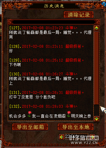 叶子猪吕轻侯:一对于奶爸今晚的爽约,我觉得因再宽容下,等等明天或者合适的时间再另行沟通,当然了,如果过几天你要真的忙起来了代理给你升级没空去皇宫PK的话,我想奶爸也可以理解你的了。总之还是开心大话,激情PK为目的,不然投资那么多玩的憋屈也没意思不是吗? 斗神い:希望大家都能理解,这个不是怕不怕的问题,有时忙于工作家庭没上号不能成为他所说怕的理由。他没空是正常的,我没空是怂逼的,我一直纠结在这一点上,所以这2天火气大点 叶子猪吕轻侯:春天快到了天干物燥的,脾气急点可以理解#23.多吃蔬菜多喝水保持心情平和有助于春天养颜美容#23.希望你每天美美哒,心情爽爽哒,皇宫战绩棒棒哒#23 斗神い:谢谢记者听我把事情经过啰嗦出来,估计别人听不来我这么啰嗦的人#86这个估计能让你忙一大会了#86 叶子猪吕轻侯:客气客气,大家开心游戏才是正事,要是晚上你和奶爸能皇宫PK,明天告诉我战果咯,最后祝你皇宫也有理想的成绩,玩的开心 斗神い:谢谢 尾音 昨晚在凌烟阁皇宫斗神与奶爸PK战绩是五比五,真真是棋逢对手将遇良才!放下他们有争议的地方,单纯作为游戏玩家来说,我也希望能带给大家更多的精彩PK.战事还在持续,战火依旧燃烧,皇宫切磋永不落幕.期待后续PK更精彩.我期待持续为大家带来更新的战况,请大家继续关注 斗神い提供的大话完整对话截图: 斗神与奶爸对话