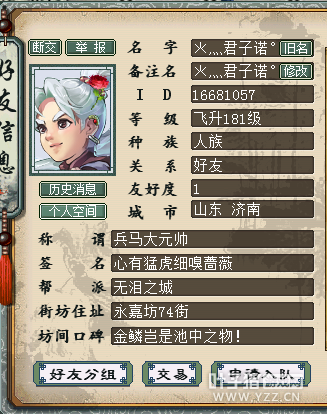 有玩家向叶子猪爆料,他的帮派最近“粗大事”了。这是玩家的原话: “帮派一个兄弟的妈妈摔到了,挺严重,做了开颅手术。然后这个兄弟在微信群里说让帮主踢出帮,他要清号了,不要影响帮战的战绩。因为我们帮是2016年度的最佳帮派——剑胆琴心的无泪之城,但是帮主并没有踢他出帮,反而发起捐款的提议,帮内兄弟积极响应,这个事很感动,所以想在叶子猪分享一下。 ” 【关于帮众的家人情况与帮里的反应,文章的最后将附上帮派群内的部分聊天记录】 不知道大家对这个帮派是否还有印象。在2016年,无泪之城的帮主*灬君子诺°带领帮派取得了最多的帮战胜利场数,获得了年度最佳大话帮主的殊荣。(结尾将附上年度颁奖名单)此外,无泪之城还因不定期举行帮众线下聚会而为人熟知,最近一次是在2016年的4月,河北石家庄。 当然,今天的主题不是募捐,也不是聚会,而是藉此机会,让记者小学生带领大家走近年度最佳帮主*灬君子诺°,分享他所在的帮派一些精彩。 【一、帮主专访】 服务器:剑胆琴心 采访对象:*灬君子诺°——2016年度最佳大话帮主。 叶子猪小学生:帮主你好,我是叶子猪记者。今天有玩家跟我联系,你们帮派主动帮遇到困难的帮众解决问题,所以觉得很感动哦。慕名前来采访,不知道你方便否?当然我也不会干涉到你们的这次募捐。 *灬君子诺°:没事,募捐的事情,我们内部自己解决。因为这是我的梦想,也是我们全帮人的夙愿。哈哈,木有见过大场面,见谅! 叶子猪小学生:我也没采访过最佳帮主,所以都不用紧张哈。聊聊帮派的一些发展历程? *灬君子诺°:帮派是老丝绸之路的帮派,我是老御马监的。我13年底接手帮派,从一个老大哥手里,从此“万劫不复”#202.其实在剑胆琴心,我打造过4个第一的帮派,其中两个我是副帮主。来无泪之城之前,我是第一帮帮主,无泪之城是丙级,默默无名。后来我们一直打到了甲级第一,而且之后一直没输过。你进来参观吧,我把自己小号离帮,帮里一个死号都没有#17 叶子猪小学生:好呀,感谢帮主。看你们聊得那么嗨(逗),你们都认识很久了吧,有现实的兄弟一起玩吗? *灬君子诺°:主体人员,一起有5-8年了。我们都是从游戏到现实的兄弟,去年我还组织了“无泪之城线下大聚会”,石家庄站。官网也有报道。从此这成了惯例,我们去年聚会了大约6-7次吧。今年的还在组织。 叶子猪小学生:好炫酷,报道我也看过,感觉特别温馨,好像也来了不少人吧? *灬君子诺°:去年那个大型的有50多个人,大型的打算一年一次,小型的就一个月一次。 叶子猪小学生:只能说三个字,幸福呐!话说,可以聊聊你觉得他们愿意待着这帮派一起玩的原因吗? *灬君子诺°:我帮派的宗旨您看了吗?聚会的时候,我做的条幅就是这个——情系大话,缘定剑胆,十年相随,一路有你。 叶子猪小学生:看起来很有爱。一般来说,区内最强大帮派的宗旨都会标明“必须帮战”、“定期清理”等类似的命令。 *灬君子诺°:一个帮派,首先要有家的氛围。再好的物资,那种人品不过关的人,我也不会收。我要的就是那些,热爱生活,热爱大话,团结友爱,喜欢交友的人。 叶子猪小学生:嗯嗯,游戏开心就好#184在这几年的管理历程中,有没有遇过一些困境? *灬君子诺°:问题肯定会有的,比如面对竞争帮派的挑衅啊。我们帮没有什么血队#17几十个大小敏队。 叶子猪小学生:帮战敏队的优势也很明显,扫队快。 *灬君子诺°:有这点优势吧。而且,身边有这么多肝胆相照的兄弟姐妹,何惧任何艰险#137 叶子猪小学生:有没有兴趣分享一些帮派里发生过的感人故事? *灬君子诺°:其实好多这样的故事啊,有老婆生孩子,马上进预产了,这边还在打帮战,让我训了一顿#83当然我不提倡这样,但是蛮感动。帮里的兄弟姐妹,一起度过了几百个日日夜夜,我们帮出勤一直很稳定。 叶子猪小学生:嗯嗯,稳定的帮战出勤率对于帮派战绩来说很重要,你们打完帮战,也都会有赏功堂抽奖吧,你对赏功堂怎么看?据我了解,不少大帮派为了吸引加盟,赏功堂里都是各种好东西。 *灬君子诺°:我们帮派从来不用赏功堂去刺激。平民帮派嘛,赏功堂都是靠捐献#17有就抽,没有就算#17我和他们是朋友的关系,而不是上下级。 叶子猪小学生:你觉得你们帮派跟其他帮派的最大不同点是什么? *灬君子诺°:这个帮派,唯一的区别的就是不孤独,不寂寞。什么时候,都有人聊天。每个人都从心里热爱这个帮派。他们都注意自己的形象,为的是不给帮派抹黑。今生有他们,真的不遗憾。 叶子猪小学生:嗯嗯,帮里的氛围给我的氛围就是,热闹中有序,逗比中温馨。话说,对于接下来要出的五级帮派,你有关注过这方面的资讯吗?你对此有什么期待? *灬君子诺°:有的,年初去北京领奖的时候,就得知了。五级帮派,我希望能够多增加些人员名额。250人真心不够啊!现在外面排着几十个人进帮。希望能够多增加#83 叶子猪小学生:很给力,帮派升级,相信肯定会扩展的,人数也有增加。最后聊聊你有什么想对帮里的兄弟姐妹们说的吧#46时间不早也不多加打扰了。 *灬君子诺°:对帮里的兄弟姐妹,我真的有好多话要说,但是时间可能不允许千言万语吧。感谢他们一直呵护着帮派,相信我,我愿意更多的付出。游戏可能不会永远存在下去,但是兄弟姐妹的情义,永远都在。一辈子的朋友,兄弟,姐妹!我喜欢好汉歌,来一首吧。这是我最喜欢的一首歌#189也送给你。 叶子猪小学生: