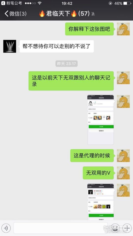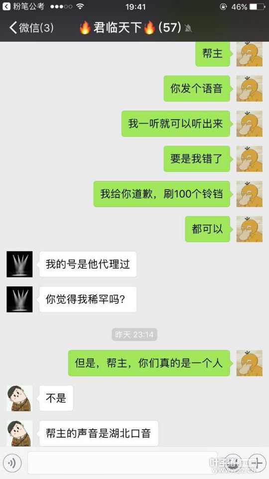 前几天叶子猪记者团曝光了凌烟阁一个毫无人性的骗子,他以各种手段获取玩家的信任进而疯狂敛财,一个老帮也被他弄得支离破碎,可以说行为引起玩家们的公愤。 资讯报道之后一些玩家与上次记者采访到过的部分玩家再一次找到了记者,他们发现了骗子原来在游戏里还有另外一个新的身份,可以说这个骗子深藏不露下了一盘好大的棋。 据各位玩家曝光的各种记录,牵扯到了凌烟阁一个大帮帮主,都指向同样一件事:已曝光的骗子-天下无双与凌烟阁君临天下帮派的帮主-君邻天下是同一个人,详细内容请看记者带回的后续采访。 【多人举报】 叶子猪吕轻侯:各位晚上好,我想问下大家,你们是怎么发现天下无双和君邻天下是同一个人的呢? 骚包大人:是通过蛛丝马迹一点一点扒拉出来的,最早的时候也就是被盗风波当天,我给君邻天下留言 我想他和天下无双那么好的关系 应该有电话或者语音之类的,君邻天下说他也没有,只有微信,并没发现无双是那样的人。之后君邻天下在线不正常了,几乎就不来了,偶尔上线一次我怎么密他也不回话。然后昨天波波(子曰.波)把证据发到我们帮派微信群里面。君邻天下把群权限给设置了,说是新店开张忙 ,语音和电话 ,都打不了。 夕瑶、筱忧:我很早就有发觉了,我原来在帮里的时候,会看到君邻天下用天下无双的号在帮里仓库放F卖,或者是拿东西,而且还有一件事,我就认定这应该是同一个人了。有次君邻天下说他要搬家了,不在江苏呆了,要回武汉,所以要消失几天,结果他消失了,天下无双也消失了,时间是一样的,且天下无双那号和所有他代理的号都说过要失踪几天啥的。 骚包大人:而且君邻天下和天下无双2个人的地址都是武汉的#35 叶子猪吕轻侯:会不会是两个人是比较近的好朋友? 骚包大人:那他站出来解释下又能怎么样呢?一个电话。一个语音不都解释?如果别人把你当骗子,如果你真不是心里肯定不舒服,那最起码你要证明下自己啊 ,而且他俩的微信相似程度太大了。 夕瑶、筱忧:再对比一下我们有几个有和他交易过的朋友,他的微信,发现有所不同,一会是无双那个号收费的那个,一会是君临的帮主的微信那个,他开始和我们玩得好的时候还不叫君邻天下,叫洞房不败。 叶子猪吕轻侯:蔷薇你好,你是怎么发现天下无双和君邻天下都是一个人呢? 初夏の蔷薇:他有加我微信,他以前叫洞房不败,后来他说要回老家不用之前的微信号了,叫我加另一个微信,我让他自己加我,他就用新的号码加我了。 叶子猪吕轻侯:改君邻天下,是去了君临天下帮派以后吗? 夕瑶、筱忧:不是,我们认识他的时候他就叫洞房不败,是君临的帮主。 初夏の蔷薇:他以前就在那个帮,就是君邻天下那个帮的帮主。 骚包大人:之前叫洞房不败,是后面改名君邻天下。 叶子猪吕轻侯:那按道理来说,他以前是个信誉蛮好的一个帮主? 夕瑶、筱忧:我是因为他在世界发了YY号叫人去YY唱歌,我才去YY频道认识他的,后来经常在YY频道大家一起聊天,然后慢慢一点一点发现他和天下无双就是同一个人。 骚包大人:原先我们也没往这方面想 ,可是慢慢的就感觉不对了, 帮里的人也是一样感觉。 叶子猪吕轻侯:一夜之间这样,如果他本人不是天下无双,他肯定要站出来澄清下的,就是不为自己,也要为帮派名誉着想来撇清和天下无双的关系啊? 骚包大人:天下无双是骗子的事件发生,我语音对君邻天下说最起码出来解释下,如果是我们误会了 ,道歉也罢,怎么样也罢,最起码事实清楚了,可是君邻天下到现在也没回话,而且根据我们受害的朋友和他在群里聊天可以发现 ,他心虚了 ,紧接着把权限设置了, 就有点此地无银三百两。 夕瑶、筱忧:天下无双的YY号有开来过YY频道,但从来没有开麦说过话。我想,他以前信誉好,就是为了想找个大头,时间成熟的时候骗一把吧。 叶子猪吕轻侯:是因为忙吗?他如果能忙到不能语音,那怎么有时间跟你微信打字呢?打字比语音貌似需要更长时间吧? 骚包大人:#83是啊 他说忙到爆,全程打字。可是他有时间打字有时间设置权限. 叶子猪吕轻侯:是大家开始质疑君邻天下就是天下无双的时候他设置权限了? ろ.未离°:我想如果不管换做是谁,当自己被别人冤枉的时候 肯定是想尽一切办法极力的去证明自己,君临城下的帮主不但不去证明自己的清白,反而当宝宝把证据拿到他面前的时候 他的行为有些反常。把波波(子曰.波)踢出了群。 骚包大人:昨晚微信群对质完 ,之后设置了权限.我今天继续在群里接着求证,他直接没回应。而且有点狡辩 ,反咬的意思 。 叶子猪吕轻侯:一般这种情况,正常处理模式不是开诚布公的告诉有质疑的人自己不是骗子,并且要积极的洗清自己吗? 骚包大人:不、他往其他地方扯,他现在的意思是波波(子曰.波)号被盗心里不舒服, 乱咬人, 叶子猪吕轻侯:这个没有什么不舒服的吧?毕竟波波(子曰.波)的东西几乎都找回了。 骚包大人:这是他的意思啊 ,说为啥要强迫他发语音, 他忙得要命, 都没时间玩了。 叶子猪吕轻侯:那怎么解释有时间打字而没时间发语音呢? 夕瑶、筱忧:我觉得是他不敢发语音了,怕有听过他用无双号发的语音和君临帮主的声音是一样的。 骚包大人:到现在微信已经联系不上了 我下午发了几条都没回,而且 作为一个旁观者你觉得这样的事情正常吗?别人说你是骗子 你第一时间应该急着证明自己不是吗?拿出强有力的证据。而且就需