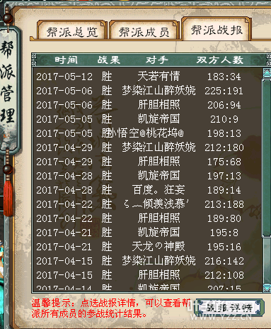 各位小伙伴们好,现在五级帮派已全服开启,今天叶子猪记者团为大家带来的是花前月下服务器第一大帮清风醉红尘的帮主专访,这是一个颜值很高的帮主哦。 作为五级帮派的清风醉红尘很有活力,记者通过采访不仅和清风醉红尘的帮主-羲‖情义无双学到了不少知识,更得到了这位被称为最帅帮主的玉照,他还友情奉送K歌给大家欣赏(K歌会在叶子猪微信公众好上呈现) 花前月下服务器第一大帮清风醉红尘 此外,帮派很多小伙伴也都真人露相,帅哥美女让人眼花缭乱,请大家跟我一起走进花前月下,走进清风醉红尘,走进颜值最高的帮主羲‖情义无双的游戏世界! 帮主:羲‖情义无双 【采访语录】 叶子猪吕轻侯:无双你好,很开心咱们又见面了.先恭喜你们升级了五级帮派.你觉得五级帮派和四级帮派有什么不同吗? 羲‖情义无双:记者你好,个人目前感觉五级帮派有几个好的地方:1、每天可以开2次状态2、帮众可以选择自己所需要的抗性,而不像以前那样,只能主抗和辅抗,毕竟是新开的玩法,具体还有什么得体验过之后才知道,原以为人数也会上升,没想到没有... 叶子猪吕轻侯:我也是,期待五级帮派开启时想过帮派成员人数上限会增加,结果确实是没有增加,这个其实对帮派来说好像影响不大,毕竟250多人要是帮战能全部来也几乎是不可能的呢。 羲‖情义无双:我最多的时候有237个人帮战. 叶子猪吕轻侯:这个区人气一直比较低迷,有237人参加,足够你骄傲了啊. 羲‖情义无双:全靠兄弟们给力,大家赏脸. 帮战战报 叶子猪吕轻侯:对了,无双,你玩大话多久了? 羲‖情义无双:我上初一就开始玩了,将近14.5年,大半个青春啊~ 叶子猪吕轻侯:初一才十来岁啊.天啊,你现在都参加工作了吧?也组建了家庭了吧?骨灰中的骨灰了。 羲‖情义无双:现在我小孩都会打酱油了,中间停了几次没玩,没事做又拿起来玩了,最早玩的是陈家庄,也就是初一的时候,后来玩福建专区,再后来玩什么水榭花香,然后玩世界末日,这区就是世界末日过来的,那时候网吧好多人玩大话,我也不怎么懂,当时有一个比我大可能7,8岁的一个年轻人在玩大话,天天带个战神女娲睡杀星星,然后我也就慢慢的和他玩起来,那时候游戏场景好像还没洛阳呢~ 叶子猪吕轻侯:很遥远的记忆了..漫漫西行路,总有些忘不掉的事,聊聊吧!你做帮主多久了? 羲‖情义无双:记忆比较深的其实是从水榭花开开始,好像是叫这个名字,有点记乱了,也就是从那个时候我开始了我的帮主生涯,当帮主的话不算中间中断的时间,应该有做了5年多,基本都是从别人那边接手的烂帮,然后一路带上来。 叶子猪吕轻侯:资深老帮主了.管理帮派有什么独到的经验吗? 羲‖情义无双:其实我做帮主就一点,从来不偏不倚,设身处地为帮里兄弟去想问题,一定是公平为基础去处理各种事件. 叶子猪吕轻侯:我看到很多赫赫有名的帮派,因为各种纷争,导致好好的帮派团队散了,很是痛心,无双有什么好办法把帮派凝聚起来,并保持第一呢? 羲‖情义无双:不管物资的好坏,也不管关系的好坏,一定要为帮派做出贡献,所以 你会发现其实我的帮里不一定都是好的物资队伍,最主要的是以身作则吧.身先士卒,当帮主就要为帮派的成员考虑,要走在大家前面,如果有闹矛盾,第一时间找到双方,把矛盾的根源找出来~ 叶子猪吕轻侯:那咱们的帮派,今天已经五级了,中间有没有危机呢?怎么度过? 羲‖情义无双:一直都有危机,这个帮好像是从2016年的年初到第一的,到现在为止只输过3次,我们清风帮的人很团结,一个帮派微信群都有130号人左右。 叶子猪吕轻侯:这个看的出来,帮派公屏也很活跃.只要是活跃的成员,就是帮派的中坚力量 羲‖情义无双:也谢谢他们可以理解我,如果谁中途没办法来也会主动告诉我,把位置让出来,然后等他们回来。 叶子猪吕轻侯:请教下人员流失的时候怎么处理啊无双? 羲‖情义无双:我帮里很少人员流失,除非我清理。 叶子猪吕轻侯:清理的依据是什么?考勤吗?那你对被你清理过的帮众有什么要说的是吗? 羲‖情义无双:管理帮众唯一的标准就是考勤,清理掉的帮众也都是我的兄弟,很多到后期都会回来,我都会提前跟他们预警告诉他们,出勤低了 叶子猪吕轻侯:这些没办法,为了帮派的发展#83. 羲‖情义无双:没事,他们会理解我,我需要帮忙的时候,他们也会回来。 叶子猪吕轻侯:刚才看见帮派公屏.有人说你是颜值最高的帮主? 羲‖情义无双:大家瞎吹的,我这种屌丝,也就是那稻田里的萤火虫而已,黑暗处才闪闪的发点小光~ 叶子猪吕轻侯:应该不是空穴来风吧?回头给大家看看是不是名副其实,还有玩家说,你是大话里最帅的帮主,帮主里最会唱歌的歌手,歌手里最会搞笑的逗比,逗比里最会玩游戏的帮主..圈圈绕,把我都绕蒙了,你能给解释下吗? 羲‖情义无双:哪位兄弟说的,我保证不弄他菊花. 叶子猪吕轻侯:不要在意细节,你就解释解释这些话是什么个意思吧? 羲‖情义无双:噢,颜值的话这个我没办法评价,这个要你记者来发表看法.唱歌的话,还行吧,从小到现在就爱唱歌,没什么歌不会,在学校也是校园十佳歌手而已。 叶子猪吕轻侯:很乐意见识并评价无双的颜值和歌喉! 羲‖情义无双:说我搞笑吧,怎么说,就是说话的艺术了,因为我的工作经常会培训别人,所以说话的艺术我还是有的,玩游戏的话,比较爱去研究吧,也经常5开做任务什么的,各种游戏任务都会带队做下. 叶子猪吕轻侯:无双