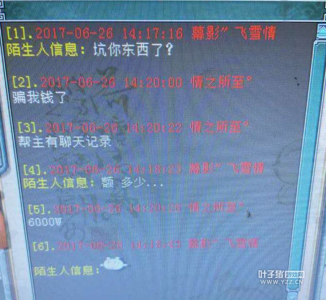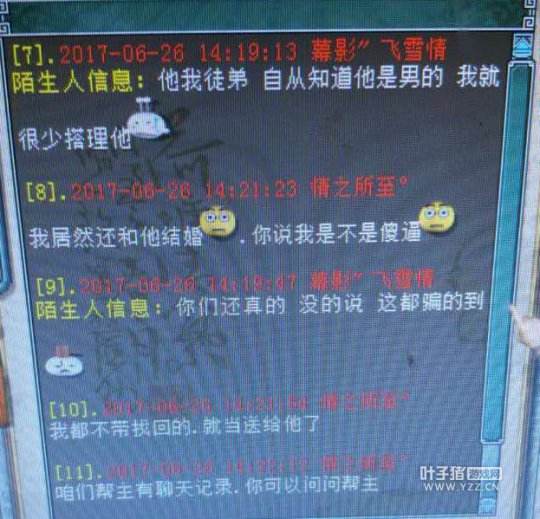 【采访语录】 叶子猪小黑:哥们,看到了你的铃铛,你被骗了什么? 情之所至:被骗游戏币6000W。 叶子猪小黑:怎么骗? 情之所至:上我号拿的。 叶子猪小黑:那你可以追回啊,可是为什么对方会铃铛反击你才是骗子,说你洗劫她号呢? 情之所至:骗子不都这么说,我已经在申诉了。 叶子猪小黑:请问你们认识多久了? 情之所至:忘记了。 叶子猪小黑:不是吧,我看你们是夫妻关系,结果现在相互指责是骗子。 情之所至:就因为是夫妻才叫他上我号帮我挂修,我要让全区的人知道他是个人妖,是个骗子。我的钱是23号没有的,他也只能拿走我的钱,别的都拿不走。我一直私聊他,不回我,所以才世界喇叭刷他。我做事问心无愧,我们帮主有聊天记录,帮里人知道就好。 叶子猪小黑:我看到你俩是在一个帮,既然你说帮主有聊天记录,为什么不处理这个事? 情之所至:叫我私聊,现在帮派谁不知道暴走瑶瑶。 叶子猪小黑:你既然说对方是骗子请提供证据,至少现在当事人暴走瑶瑶给了我证据说是你洗劫她的号哦,我已经看得云里雾里。 情之所至:给我看看。我截图可以给你,还有他二师傅是怎么说他的。 (该玩家给记者提供一系列截图以及女方二师傅与他的对话,结尾可看) 叶子猪小黑:你给一堆你刷屏骂人的截图,这不能作为证据吧?甚至看不到你是给谁刷屏。 情之所至:他都不回话,怎么办?就今天刷他他才回了。 叶子猪小黑:截图里你让他还给你的钱你就还装备给他这句话是什么意思?还有你昨天晚上是否开过对方的号杀地宫呢? (对方无回应) 【采访语录】 叶子猪小黑:你好,我是叶子猪记者小黑,刚看到你们铃铛,情之所至说你拿走了他6000W游戏币是吗? 暴走瑶瑶:你没问他?我给你看看我找回的东西,都多了时间锁。 (该玩家发了一堆3J无默契PS矿石等等都有10天的时间锁) 叶子猪小黑:美女是否有客服申诉截图? 暴走瑶瑶:你觉得这些东西我有必要上锁吗?我空间第一个截图就是我从二品侍卫那取东西的时候。 叶子猪小黑:我希望以客服申诉的截图为准,希望你能找一下。 暴走瑶瑶:我看看我手机有没,我一会发到空间。 叶子猪小黑:不一定手机照,你现在打开客服专区登陆上去就可以查询,截图即可。你边找我们边聊吧,我发现你俩是同一个帮,对方说帮主有证据知道你是骗子,你们帮主怎么不处理这个事? 暴走瑶瑶:他拿完东西才进我们的帮,我帮主是我二师傅。 叶子猪小黑:那你师父怎么不处理这个事情?慕影飞雪情是你师父? 暴走瑶瑶:嗯,我传上去了,你到我空间看吧。警长我是否还要把上时间锁的物品给你发一遍? 叶子猪小黑:我看到了,能否了解下你们是怎么认识的? 暴走瑶瑶:他的号以前是我好友,好长一段时间没上了,后来不知什么时候上号说这号是买来的,我说你买这号为什么没有系统提示我,他说不知道,最后说要和我结婚,我就答应了。25号他说上我的号杀地宫,我就让他上了,等我黑夜上去的时候,钱就9W,我再看东西,除上了时间锁的剑精灵宝宝外,别的没上锁的全没了。 叶子猪小黑:他说你23号洗了他号上6000W,25号不是昨天吗?还能开你号地宫?我再找你确认个事,昨天,也就是25号下午6点多他是否在好友信息里轰炸过你?还说了那句“不给他钱你装备别想要”的话? 暴走瑶瑶:没有。 叶子猪小黑:那么你们游戏昨天是否交谈过? 暴走瑶瑶:忘了。反正我已经找回被他洗劫的东西。 男方情之所至怒刷暴走瑶瑶是骗子,两人互恁是骗子