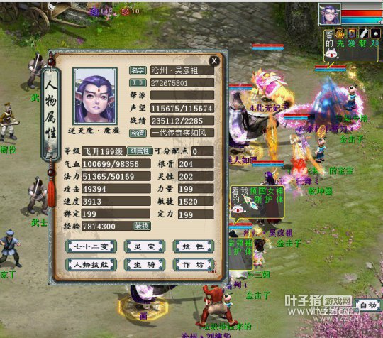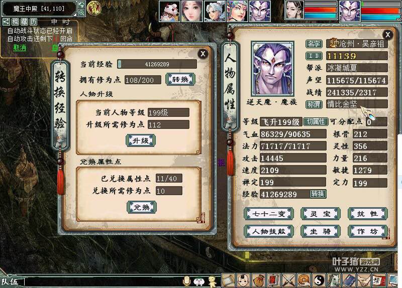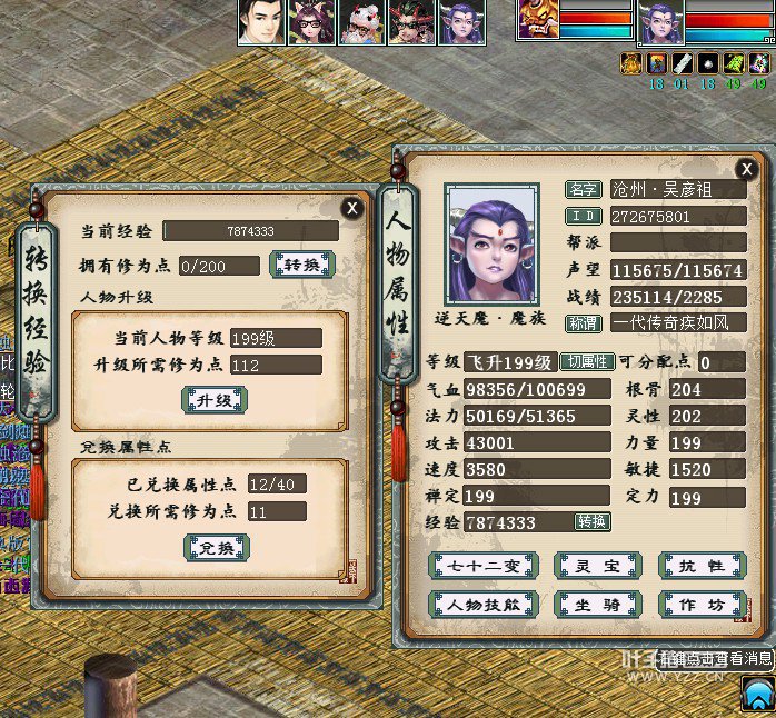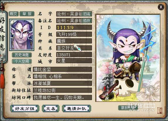 叶子猪柒柒:当时你进比武时兑换了1点人物属性点对吧? 沧州吴彦祖:是的,现在是108的修为点,只要扣掉在比武时兑换的那10修为点,就是98修为点,正常每个月是95E,这个月代理比较给力。 叶子猪柒柒:如果不是看了你的数据图,我真不敢相信这是真的!等于199级每天3E+经验,毕竟等级上了164后经验受限制,能否透露下你升级的秘诀? 沧州吴彦祖:这个要归功于我的代理,他怎么弄的经验我不知道,今天的日常还没做完呢。很多人都不相信我一个月95E经验,其实真实经验还要多。等下代理做完日常这个月积累应该会到100E经验。 叶子猪柒柒:我现在信了,我记得6月比武大会你的敏是3913,作为四年以下,称你为第一男魔当之无愧,现在在突破200级的关卡有没有想冲刺4000敏 沧州吴彦祖:应该没希望!我月饼点少15点,升到200级多5点,还有29点属性点。 沧州吴彦祖6月的敏属性已达3913,称之为四年下第一敏魔当之无愧 叶子猪柒柒:到了200J是否达成了你一个目标? 沧州吴彦祖:嗯,他们都说要我先换属性点,但是我觉得到200级的意义更大。我以前级别低,这两年超越了好多级别比我高的。 叶子猪柒柒:现在四年以下200J级别的玩家不多,像你是个非常酷爱敏队的玩家 现在队伍怎么样了? 沧州吴彦祖:敏队我觉得还是很尴尬,几率成分太高,慢慢玩吧。以前也是血队伍,但是 玩了敏队以后就爱上这感觉了。痛快,不墨迹。玩敏队心态一定要好,我们队伍几个心态都挺好的,输赢无所谓,心态不好的话敏队坚持不下去。 叶子猪柒柒:早前听说你是相爱一生的帮主,帮派弄的怎么样了 沧州吴彦祖:帮派……别说了吧。很尴尬,我上线的时候很少,基本是没人管。成绩很稳定,万年老二 叶子猪柒柒:主要是为了打比武弄的帮派对吧? 沧州吴彦祖:对,主要是为了比武名额。当时没人给名额,只能自己弄。现在帮派人多了,就不单单只是为了名额了 叶子猪柒柒:大话马上15年 你玩了多久呢? 沧州吴彦祖:小学就开始玩,3年级左右,应该是刚出第一年就开始。但是因为上学原因,断断续续的。怎么说呢,现在大话不单单是游戏,我觉得成了不能割舍的一部分了。 叶子猪柒柒:你同学也3年级玩大话啊?好厉害的样子 第一个服务器是哪个区呀? 沧州吴彦祖:冲点充不起,就和家里说买这个买那个,反正都是回忆。第一个服务器好像是车迟国。那时候都是瞎玩,后来慢慢大了,玩的也就越来越精了。 叶子猪柒柒:现在的大话玩法迭代也比较快,你是否能适应 沧州吴彦祖:……确实更新的太快,有时候觉得太累了。其实对于玩家来说,玩大话更看重的是感觉,现在玩大话的基本是上班族,没有那么多时间和精力,只因为割舍不了对大话的情感吧。刚刚弄好召唤兽装备,马上出宝石,宝石还没弄好,又出法门,永远跟不上脚步 叶子猪柒柒:能否聊点你对游戏的留恋? 沧州吴彦祖:我只想说,回合制网游大话是鼻祖,其他靠边站。要玩就玩大话2。大话虐我千百遍,我待大话如初恋 沧州吴彦祖留影