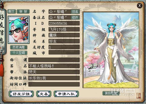 (该玩家游戏不在线,游戏人物资料为紫晴给记者提供)