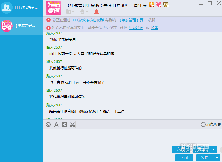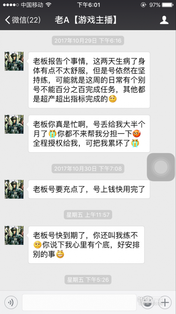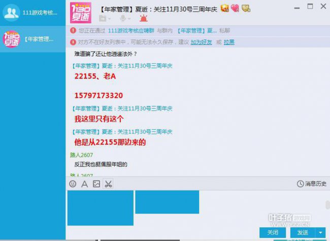 又有玩家被骗两只孟极,联系客服得到的回复是正常交易,在记者了解来龙去脉真的哭笑不得,有时骗子气焰嚣张,很多都是玩家自身的问题,需要为自己的损失负很大责任。 有时何止算骗术?完全是把自己游戏财产赠送到骗子手上,但是,已经损失了,记者还是希望能帮这位受害人挽回损失。 先大概描述下来龙去脉: 受害人来自一生一世服务器,一个五开党玩家。10月12号登录网页CC去了年姐工会找了他们工会的年家老A做代理,给练5个号,刷刷日常和五倍这些,一个月是2588元!当天玩家就把钱转给对方了。 由于受害人上号时间较少,11月5号上过一次号,发现号丢失了3E游戏币,年家老A表示有个老板急用钱是他徒弟上号拿的,到了11月8号受害人再上号,男人号和女人号的孟极丢失。 这个时候代理年家老A已经微信拒收受害人的信息了,受害人只好再一次联系年姐工会才得知已有受害玩家举报了这个代理年家老A,对方在工会的马甲已被下 最后年姐也在CC语音回复,大概是这么说的:你不会先让他练号在给他钱吗?这个代理已被踢出年会,不归工会管了。 代理年家老A的电话也拒接,年姐工会又不管,受害者只能向客服求助,但客服的回复是查证正常交易,这也意味着两只孟极找不回来了。 玩家提供年姐公会的截图