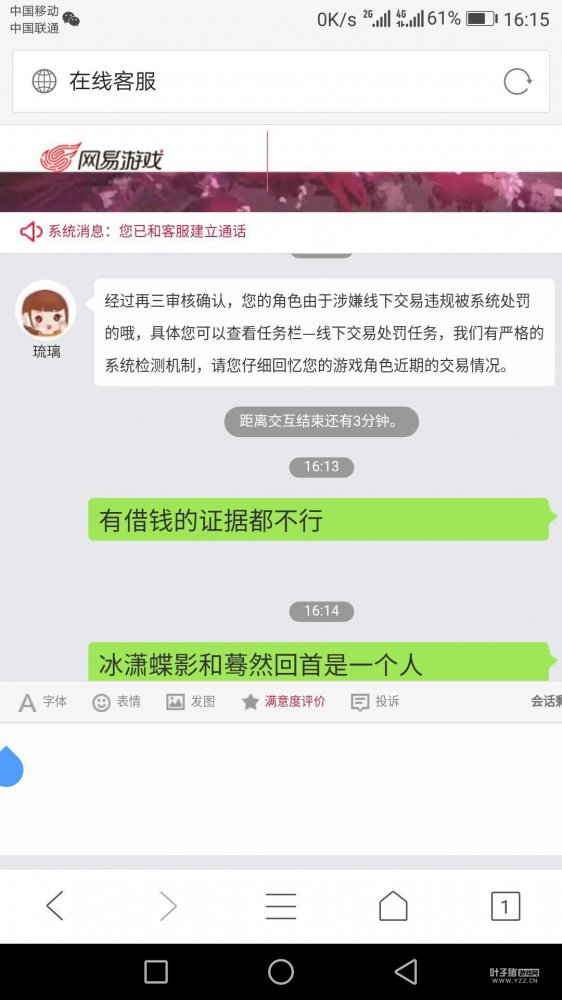 叶子猪小黑:客服一开始那么判定肯定是没问题的 因为交易的号没借钱记录 是你拿另外一个号 只要证明同一人应该会解除的 蓦然回首:但是现在就是说我无偿交易就是线下交易 叶子猪小黑:你一直强调客服讲无偿交易也属线下交易,能否提供截图? 蓦然回首:我朋友没截图刚才语音还说呢,我现在还在申诉当中 叶子猪小黑:必须要有截图或者录音,否则不能证明客服说过这类的话哦。 蓦然回首:那就没办法申诉了? 叶子猪小黑:可以申诉,继续联系客服可以录音,客服那边可以提单,提交下你的两个号IP证明1个人。 蓦然回首:好吧,也麻烦你这边帮我报道下这个事。 尾音: 玩家游戏借钱被判定为线下交易的处罚很简单,借钱是一个号,交易又是一个号,所以这里提醒下大家借钱的方式注意下,避免再发生类似的处罚。 在此也希望客服能为蓦然回首和借钱给他的好友处理好这个事了。 [编辑:一笑奈何]