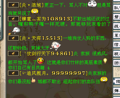 叶子猪吕轻侯:什么时候的事了?咱们的反击模式是怎么样的呢? い追风揽月。:做日常的帮众是这么说的 给我们,就是前几天晚上 那时候高大帅还没有去偷袭 帮众反映被偷袭以后 高大上高层立即决定给予回击. 叶子猪吕轻侯:帮众为什么被偷袭呢?竹林没有给个说法吗? い追风揽月。:没有的 被杀得那个兄弟至今还有被杀得截图 不知道谁杀得 名字不知道 就知道是竹林 帮众说不知道为什么 因为平时一个仇人他都没有, 叶子猪吕轻侯:咱们的反击方式是什么?组织人马偷袭回去? い追风揽月。:对 半夜给我们打的电话 我们是坚决的回击 不是主动去偷袭,游戏里的矛盾恩怨纷争.一句话:直接干! 叶子猪吕轻侯:然后对方也开始偷袭高大上的其他玩家了?高大帅被偷袭之后就武力升级?演变到现在了是吗?加上各种传音,各种看热闹不嫌事大的添油加醋... 剑烛沧海这几天的部分传音铃铛截图: |