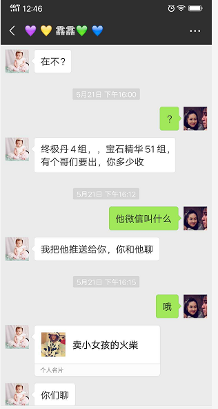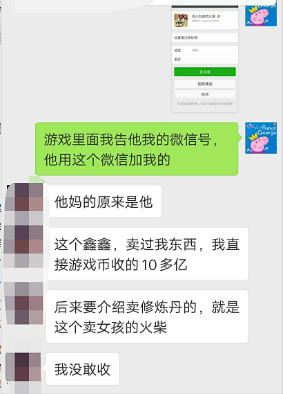 前言:近日有玩家给叶子猪记者爆料:说是新服沧海潮出了怪现象,有人借着女生身份在游戏里疑似搞诈骗.下面是爆料人给记者的详细爆料内容,希望大家看到后多警醒自己:任何时候都不要头脑发热,就会避免很多陷阱。下面是具体内容: 彪哥:你好,我要曝光一个商人利用自己的媳妇出来行骗, 被我提前发现,我想曝光他以免会有土豪被骗. 这也算是骗子新招数! 吕轻侯:利用媳妇行骗….. 好吧,应该曝光..(有点懵,怎么有这种人) 彪哥:头一次听说吧?是不是有点稀奇? 吕轻侯:确实前所未有.应该曝光的,避免其他玩家受损失.能说说具体情况吗,怎么会被人利用女生身份差点被骗? 彪哥:对呀,我也差点被诱惑,虽然我色,但是在这里我做的稳当.这么说吧,,大家都喊我嫖哥。小红旗。我也是一名摆摊商人,具体的说就是主做移民区1.5-------4年以下服务器终极丹,宝石精华消耗品流通的商人,事情还要从前5天说起,我在【沧海潮】服务器摆摊,签名备注收终极丹,宝石精华,。以及我个人微信号,然后就被骗子盯上了.骗子 微信现在我确认的是2个,具体还有没有别的那就不清楚了. 吕轻侯:上面两个微信都是你说的那个商人骗子的吗? 彪哥:是的,部分聊天记录提供不了了,他已经拒绝添加好友了. 吕轻侯:你说他是骗子,具体是怎么操作的呢?还会牵扯到媳妇? 彪哥: 他媳妇(卖小女孩的火柴)跟我聊微信全程用的是语音跟我说 的,没有打字,目的就是,如果我给他的价钱合适他会用这个小微信跟我交易,交易完后,利用找回等方式进行行骗。他本人微信在我们群里,我连续骂了3天他都不露面,所以我想的是找个记者曝光他,目的就是让每一个大话玩家在买卖东西的时候找熟人,因为利用女人行骗是我见过的第一个大话商人。 吕轻侯:然后还没有交易,你就发现了他的企图,并没有进他的套,他用自己的号喊卖然后用是女角色的小号交易,而且这个女角色微信小号是他的老婆,是这样吗? 彪哥:对的,我发现的了他用的是小微信。我不敢跟他交易,,假如我交易了今天说啥也晚了,就是没有进行交易之前,女角色(他媳妇)撒娇买嗲之类的,让你感觉是个女孩子不能太较劲?不管是谈价还是付账,男人总是在妹子面前容易丧失正常思维,脑子一热可能就爽快的付账了。 吕轻侯:这个女角色的微信号是他推荐你的吗? 彪哥:是的,游戏内我告诉他微信他添加我的。他把他媳妇的微信还给一名大话玩家推荐过. 吕轻侯:这是推荐给其他玩家的吧?发现他可能是骗子之后,你采取了什么措施呢? 彪哥:朋友圈发布,以及游戏微信群扩散.让大家注意不要被骗了. 吕轻侯:后续对于可能是骗子的他你是怎么应付的? 彪哥:目前已拉黑小号,绝不跟人品不过关的人做生意,因为我没有跟他交易,只是我自己幸运,第一先告诉我的朋友,以及商人同志们,跟他们说这个人东西不能收,交易需谨慎,骗子出新招,世界慢慢强大,大话慢慢的更新,但是骗子的也是无处不在。新招更是牛逼克拉斯。 吕轻侯:层出不穷的花样和套路,让一般玩家措手不及,还好你比较谨慎,防患于未然! 彪哥:是啊,是哇,期待我发现骗子新招能通过叶子猪给更多的人警示:任何时候都不要头脑发热,就会避免很多陷阱。 吕轻侯:感谢你站出来曝光,祝你生意红火游戏开心! 彪哥:也祝你天天开心,天天有好心情! 后记:爆料完毕.记者为这个玩家谨慎的行为表示赞同,但是还是千年老调重弹:,任何线下交易,都是有风险的,会面临各种各样的陷阱和套路,大家游戏的物资流通要尽量走藏宝阁才能避免损失.祝广大玩家都能安全游戏,快乐生活! [编辑:韦小贝]