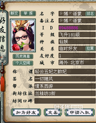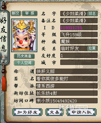 帮派堂主之一 帮派主力-少妇柔滑截图 我叫《少妇柔滑》,一个听着很贱很女人的名称,在情系超级大帮担任虎栖堂主,炮灰中的总指挥,就不介绍怎么认识帮主老丁了,因为老丁为人很好,从他建帮不到一个月之内就能弄成现在的规模,没很好的人品是办不到的,情系这个帮派名称也是精挑细选,这个情意味深长,是一份真挚的友情,不能说虚拟网络情不实际,只不过你没碰到对的人,我以前也认为一个破游戏哪来那么多真感情,把大话当单机版游戏玩玩就可以了,可在长安桥头和一个名叫长乐的男人插肩而过后他就尾随我走了一路,也许我游戏名称太骚气,刺激了他的雄性荷尔蒙,加好友聊过之后才知道他看我屁股大想让我给他生孩子,就这样一段真诚的友谊(jianqing/jiqing)开始了,他在现实中帮了我很多实际的忙,虽然相距遥远,就更不用说他在游戏里帮我多少了,这就是一款游戏创造了一份友谊,在云山这区情系帮派是个真诚与友谊的交流平台,这里集聚了实力与友谊并存的体系,你想要的情意也许就在这里,来吧!我们帮战口号是踩着敌人的头颅走向辉煌,让敌人的血来祭祀胜利的向往!一个有情有义有血腥的帮派谁能阻挡!还有谁!还有谁! 帮派长老之一: 帮派主力=嫣语蒙截图 情义西游长老嫣语蒙:大家好!我游戏名字叫嫣语蒙,是一名181级克木女炮!掉进这大话坑一来一回有十多个春秋了吧!当初玩这游戏是现实中的男朋友在玩,我看着好玩就掉进这坑里一发不可收拾了!13年清过一次号,当时清了两号亏了好多万呢。去年又回来玩了。除了大话西游,别的游戏没什么兴趣!大话西游这款游戏玩的是一个情怀。一个偶然的机遇,看到巜情系西游》刷铃铛招人,我是看到很有意义的帮派名字,同时知道老丁哥是这帮的帮主,我就决心与老丁哥携手并肩共同打造一个有情有义的帮派,同时招聘5介2600敏克木霄汉炮,带2作鸟,画中仙。然后就是帮派招5介以上成型队伍,敏血队都可以联系方式:微bao47114;游戏id:82823888.也希望热爱帮战的有志之士加入我们的情系西游帮!情系有你更精彩,我们携手共创美好辉煌吧,我在情系等你们的到来,不见不散! 帮派长老之一: 帮派主力-缥缈冰之寒截图 我叫飘渺灬冰之寒,任长老一职,是帮派帮战的挑战队之一,虽然我和老丁哥相贱很晚(没有错别字),老丁和我说玩大话可以轻松月入3K,我把房子抵押贷款买了神兵神兽后发现真的可以,所以觉得他是一只真诚的人,一只有纯粹理想的人,一只有远大抱负正直的人!(老丁人真的不错)所以我决定和他在一起共同打造情系西游!爱你老丁,爱我情系西游。请大家支持我们情系西游。 帮派成员之一 帮派主力围龙客家截图 我是围龙客家,以前是小帮众一枚,虽然只是帮里最底层的一员,但是我却为我能在情系西游这个帮里感到荣幸,帮里的不管是RMB战士,还是平民玩家大家都团结合作,哪个有困难,大家能帮忙的就会帮,而且说出来可能大家不会相信,玩游戏还能有现实合作,我们帮里的玩具制造商,现在大批量给我玩具让我代销,而且我没什么资金他还不要我先付钱,因为之前号底子不好,卖掉了之后在其他区重新点了个190的号,这几天就移民回家(藏宝阁买号需要七天才可以移民,记者注)我现在正奔着6介的目标在前进,感谢大话,感谢云山,感谢老丁,感谢情系西游,让我认识了我人生的贵人[發]