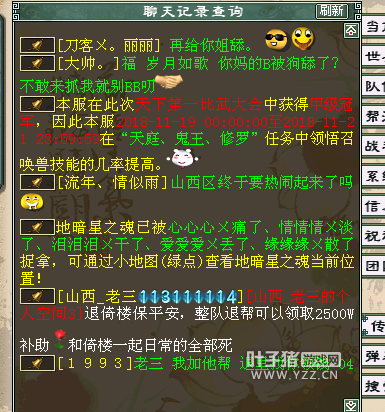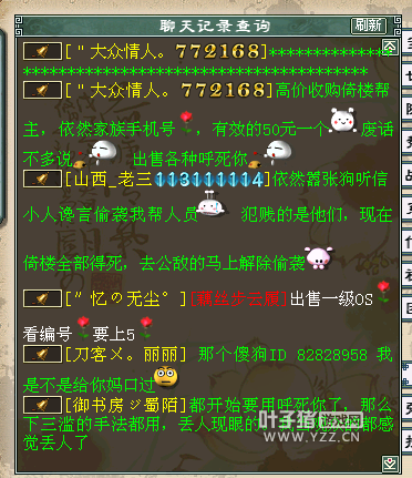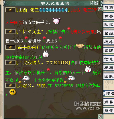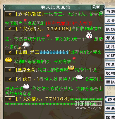 山西新区最近一直在风口浪尖 ,乱世开网咖,比武夺冠,买通剑烛主队指挥等等各种信息让人应接不暇。 日前记者发现山西新区又活跃起来了,有个帮据说要进前三会影响比武名额导致被打压并被收集号码准备被呼死…… 山西新区到底发生什么了?先给大家看看最近山西新区的部分传音截图: 玩家铃铛收购玩家手机号码,开价50元1个