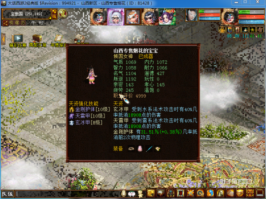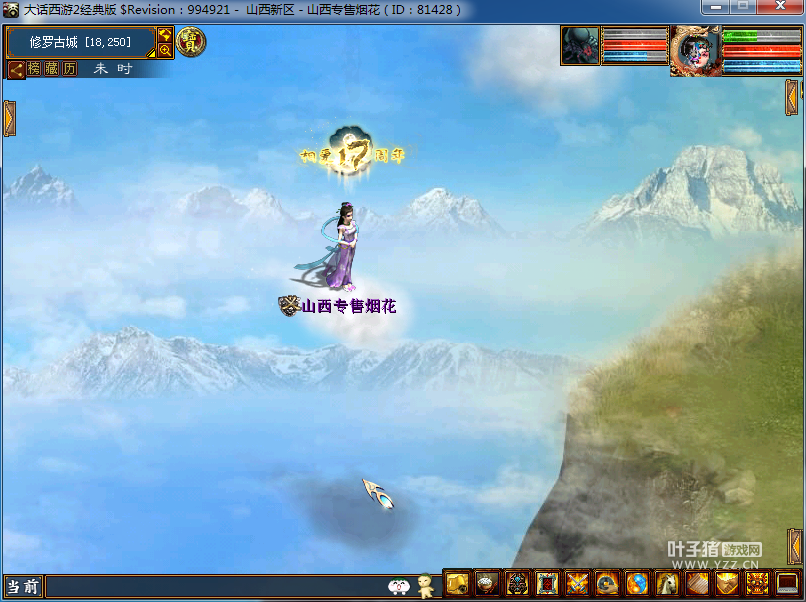 我再一次回归大话,选择服务器:山西新区,取名为山西专售烟花。 可能有人看我的名字会问我是不是改行了?我呢,依然是名警察,不过我家销售烟花,所以每年过年的时候,我口袋里的零花钱很多,不过我们这的烟花也快禁放了。 与我的神兽手办合影一张