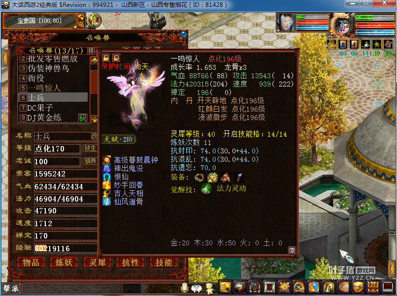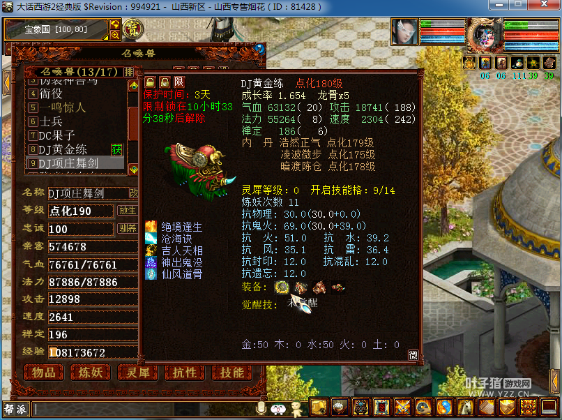 你是否试过走20多公里路,就为去镇里的网吧玩大话?这些对我来说,记忆犹新。 今天登陆陕西专区的小号看了下,一些老版的东西依然躺在那里。不知大家认识下面这些吗? 李白的这个活动我还是挺喜欢的,可惜没了。还有些宝石打造的衣服武器那些,当时我玩的是个小力连击魔。 后来因为修正问题,最重要还是转生等级吧,我是0转98转,1转118转,所以不得不换号了。 接触大话西游2这款游戏是发小拉我去网吧,我们当时住村里,由于电脑还没普及,去镇上的网吧,年三十,九点开始走的,十点二十到的。 发小找我借钱买了15元的点卡,我好奇之下也加入了,还记得找村长抓飞鱼那些岁月,一个小小的巨魔王在珊瑚海岛砍飞鱼,那个服务器叫做无底洞。 上网被父母抓包过,男女混合双打,可以说我为大话付出的太多了,哈哈!!! 之后在皇城相府,现在的陕西专区,是山西专区分出的区,而我现在所在的是山西新区,我想大家可以知道,我是个山西人了。 我曾经游戏选择了自杀,删号是伤的不行,那是一段血泪史:我被骗走了以牙明察双终极冰块那些…… 当初我选择了走线下,按照约定,物品在藏宝阁挂低价,对方线下给我打了5W5.(支票那些图已丢失) 我和骗子是周五下午交易的,短信提示到账5W5,然后我查了下网银也有,就把神兽那些东西给了人家。因为是跨行转账,再加上中行周6周日休息,人家周1的时候早上8点撤回了钱。我联系客服申诉,客服说说理由不成立,还有说是属于正常交易 那时我已经是一名警察,发生这样的事情,真的丢脸死了,一怒之下游戏选择了自杀。之后再回归大话,打死我都不会再线下交易了。 我再一次回归大话,选择服务器:山西新区,取名为山西专售烟花。 可能有人看我的名字会问我是不是改行了?我呢,依然是名警察,不过我家销售烟花,所以每年过年的时候,我口袋里的零花钱很多,不过我们这的烟花也快禁放了。 与我的神兽手办合影一张