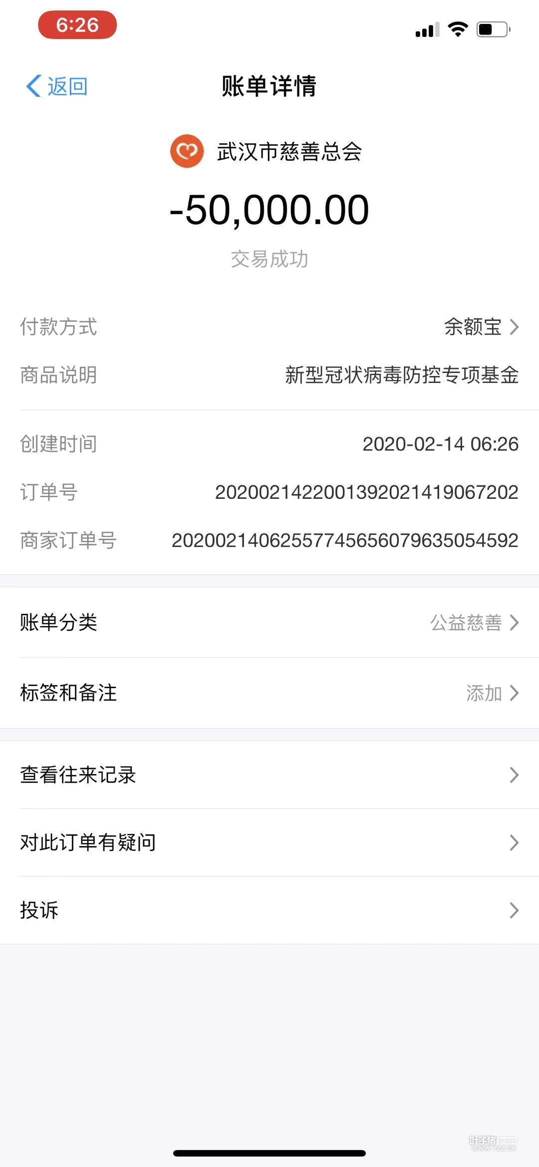 Q:我们知道您也为了这次疫情捐了5万,能详细给我们说说吗? A:这次“新冠病毒”的疫情爆发的比较突然,又赶上了过年,然后武汉疫情又那么严重。我只是尽我自己最大的能力,多方了解下把款项捐给了武汉市慈善总会。虽然不多,但希望能够帮助有需要的人,我们一定可以携手早日战胜疫情。 捐助5万记录