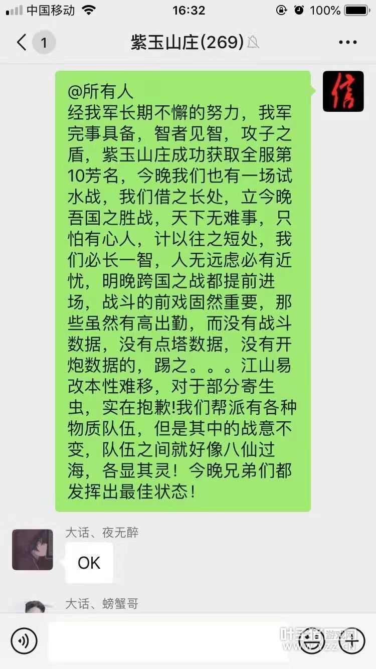 Santz小三:紫玉山庄是18年的老帮派了,我加入紫玉也有十多年了,战绩也一直名列前茅。