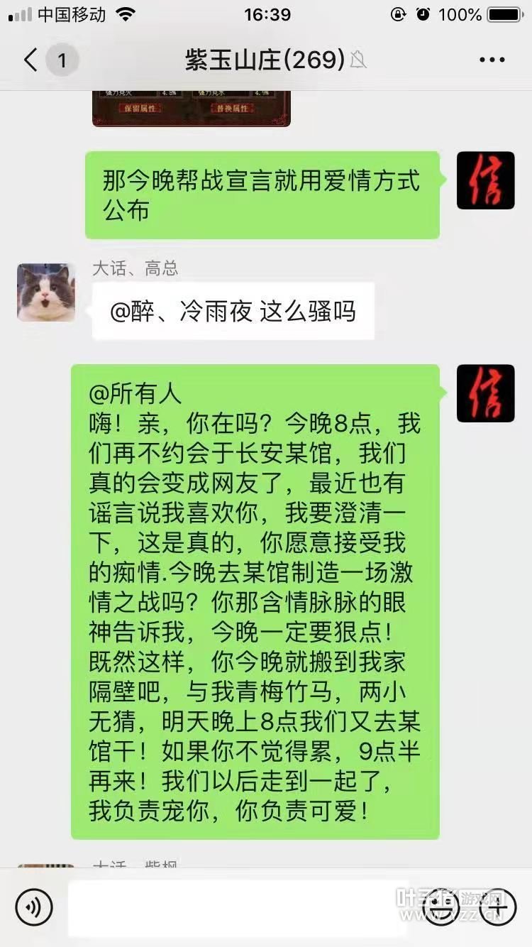Santz小三:发这个目的其实就是活跃下气氛的。与此同时,紫玉山庄也诚招热爱PK,热爱帮战,敢于担当,志在奋斗,具有大局意识的兄弟加盟,共创大话生涯的精彩情怀。在这里也向所有的大话玩家们问好,更祝叶子猪红红火火,祝每一位大话玩家都健康快乐!