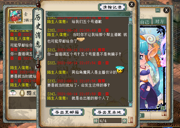 就这件事情来说,体力商人魔尊是这么说的:我不会道歉。因为我要的是欠的钱,并不是施舍的钱;而且如果号主和这个骗子没有关系,为什么钱现在到了他手里?钱不多,我刷世界和传音是让更多的玩家了解情况,避免再次被骗,而且也不能助长骗子;最后就是,对方一直想让我给他们道歉,不知道他们怎么想的。骗子骗了我,现在想挽回面子,把应该是我的钱给我,然后给他们道歉让大家知道他们不是骗子? 小编后记:事件还在持续发酵,涉及的钱大约就是号主传音中所说的300元。按照体力商人魔尊的说法,钱不多,但是这种让道歉才给钱的方法让他无法接受,而且世界和传音上,玩家们也纷纷表达了自己对这件事的态度。号主最后下线,也试图和体力商人私聊解决,但是最后没能达成一致的意见。后续事件会如何发展,请大家持续关注叶子猪大话2公众号。 [编辑:纳兰德骑士]
