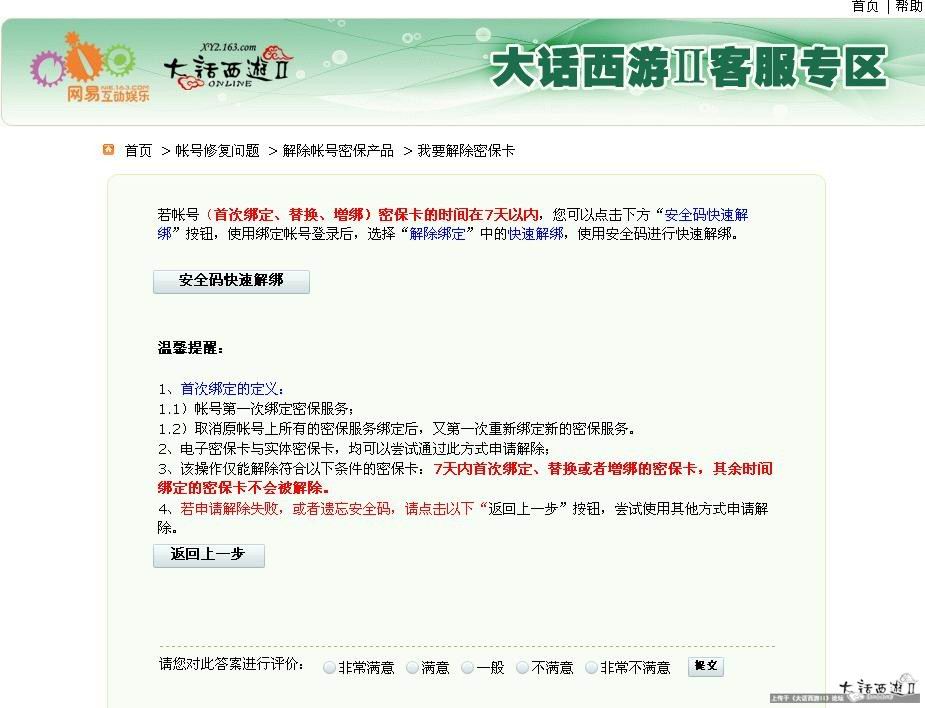 3.在锁定账号并强制下线后,账号暂时安全。接下来需要解除盗号者恶意绑定的密保。 这里可以选择前面所述解除密保产品的方法(第3-4项说明)。但是这里需要选择用安全码去解除,也就是上面的a选项。 |