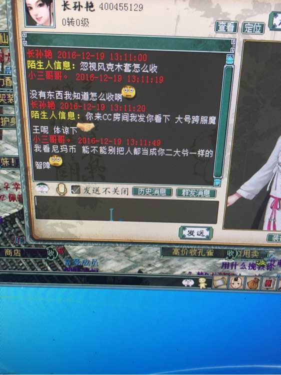 【典型案例三】:大号在跨服魔王窟,方便来CC看下东西吗?