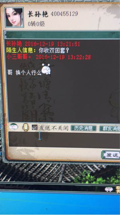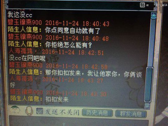 最近有朋友反映,他好几年没玩大话,最近新买了号,但在收装备的时候遇到有人联系他上CC看图,还好及时咨询其他朋友最后得知了对方是骗子。年关将至骗子出没,那些CC、QQ(tx无故躺枪...)的套路你是否遇过? 对很多老玩家而言,这种骗术早已过气,但事实上还是偶有中招。文章整理了这种骗术的部分套路,不妨来看看以警惕自己。 【典型案例一】:出门太急忘记带手机了,没法上大号,你来CC/QQ吧。