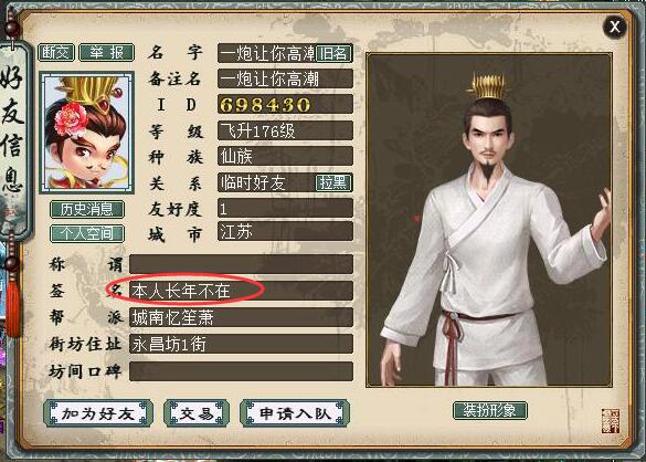 高危预警!防火防盗防线下!看个宝宝就要一万块?观赏费要那么多? 年底了,也是骗子最张狂的时期,世界发个宝宝就让转账一万块?观赏费吗? 骗子嫌疑人: 因为有一些是语音聊天没有截图,我这里先讲一下事情的经过: 因为队伍需求,我需要补充一些物资,世界看见有个人在卖画中仙,就联系问问价格,那个男人说一万RMB,我问藏宝阁价格,他解释到因为藏宝阁上了太多东西,不愿意挂格子... 因为互相不认识,自然不会线下交易,我说诚心要,让藏宝阁指定我,就各种推脱,后来他提议用大话B跟成就交易,9500价格,我就开始砍价9000,他同意了,我就开始收东西。 找商人收了20E的大话B,开始收成就,期间他不停的催促我,各种洗脑不愿意藏宝阁交易的利与弊,各种催促各种借口,试问你能在一个小时内收到1万元的物资吗? 最后说8500价格卖给我,10E+200W成就,其余转账4000多。我就说好吧,就交易啊。其实大话B还有,只是一次只能交易10E+物资,然后他就让我先打钱... 一言不合世界发个宝宝就让转账?双方有点僵持,我就说格子指定给我吧,就各种不回消息不卖了。 究竟是骗子上号,还是掩耳盗铃欲盖弥彰不言而喻。总之,希望大家防患于未然吧! 下面发一下游戏里的聊天也给大家做个警戒!