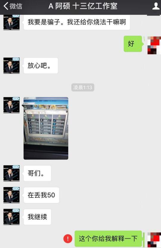 想冲新区但又觉得烧法很麻烦怎么办?下面这位玩家因为找了一个“工作室”,结果... 可想而知,线下交易的危害虽然多次有提过,但还是不能避免前赴后继的上当者: [编辑:韦小贝]