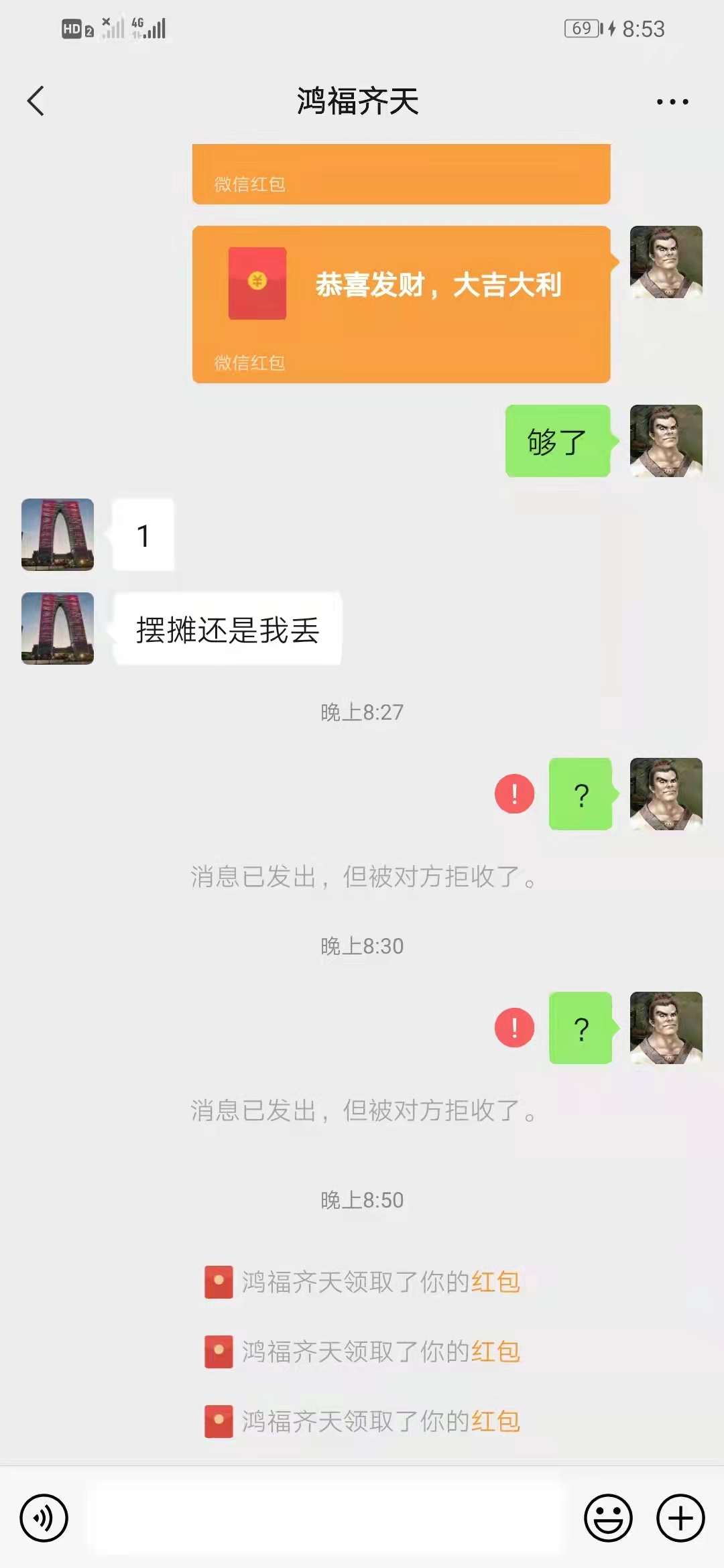 玩家在当晚发现此事后,马上顶号和进行传音澄清,但是还是让骗子把一位群友给骗到700块! 被骗玩家的红包记录