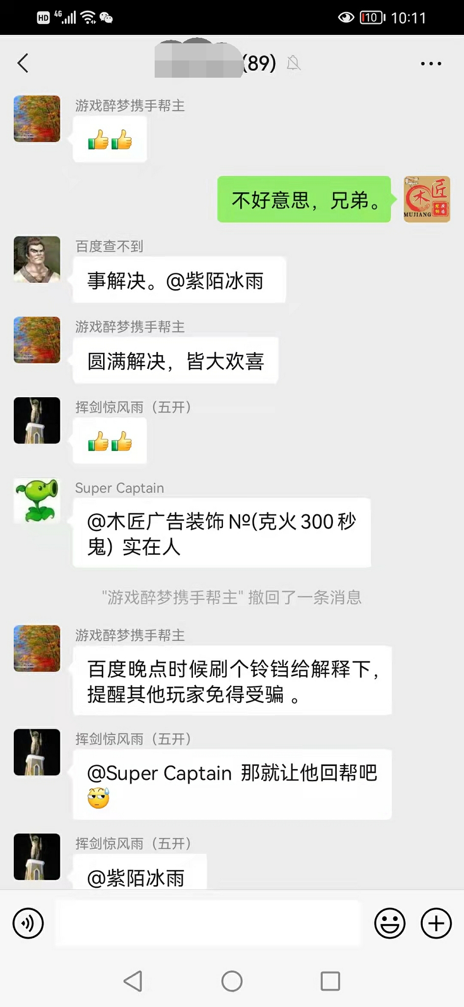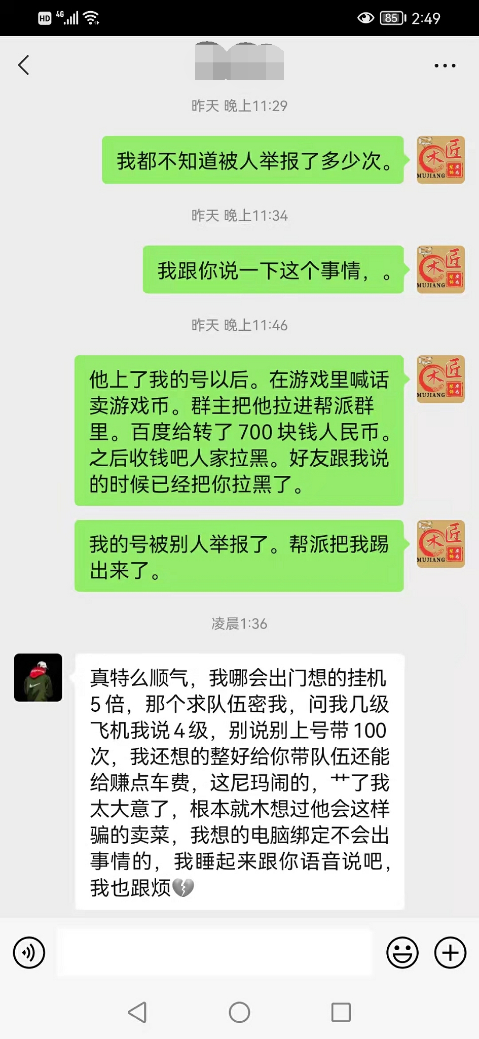 事情就这么暂时告一段落了,玩家的名誉也是经历了一波三折后,终于挽回了一些。玩家反映别的群也有刷他是骗子的,玩家表示:不管怎么样,毕竟我是号主,游戏里的朋友都素未谋面。所以只认号,不认上号的人的。 其他玩家的劝告