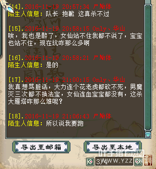 一路坎坷,总算是用了一个多小时把大雁塔杀了,还好是杀完了,不至于心中有遗憾。 可是第二天我自己组队杀大雁塔的时候就没有这么幸运了。先上图,大家就看看这聊天记录,不知道你们看出来点什么? 这是和神兵破一路的对话,神破这样真的好吗?