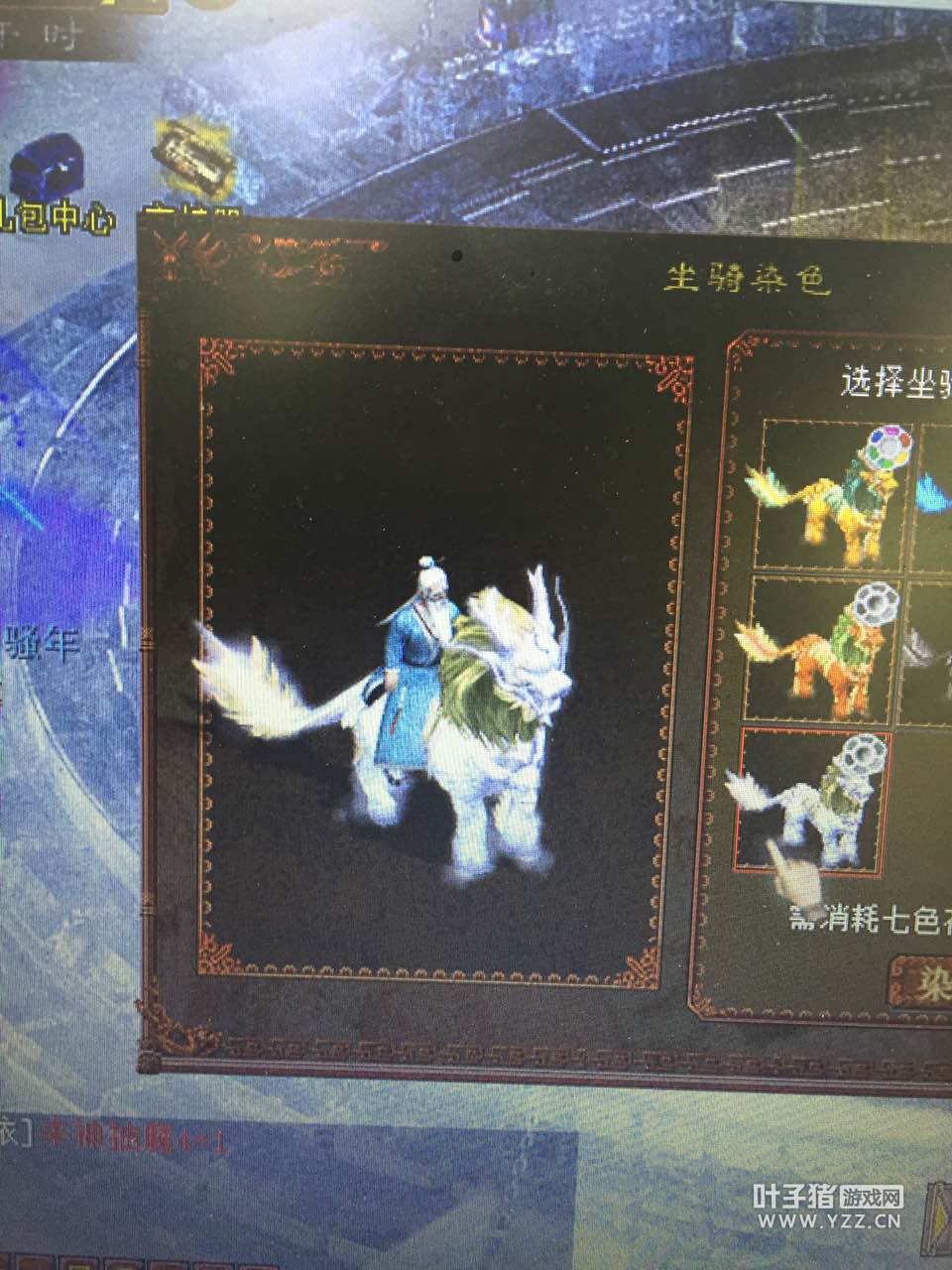 染色所需材料—七色花 这个麒麟总共有七种染色方案,我们来逐个尝试吧。 共有七种方案 这个蓝色貌似跟老头仙的衣服挺配的黑色宝宝很稀有,黑色坐骑怎么样? 这个应该是橘黄色吧?貌似不够好看 银色,感觉好神圣有木有 粉色好像不是很搭呢 深蓝色也来一发 最后还是选择了感觉特别帅气的黑色,再配上黑色礼服,逼格感觉瞬间就高了不少! 黑色坐骑配礼服,是不是很酷?