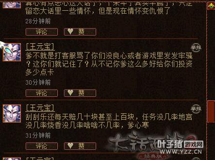 一男魔在空间中记录下自己的诸多不满,有玩家看到后觉得太过偏激,也有玩家说,或许,这是背离了玩游戏为了休闲的初衷? 看看这玩家的怨气到底有多大: 不做过多评论,只希望无论如何,打骂皆是爱,愿多多淡定,世界和平...... <<<点击进入大话西游2论坛讨论>>> [编辑:韦小贝]