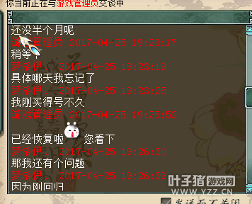 今天在游戏里遇到一件比较暖心的事情,特地给大家分享一下。 本来买号没多久,误操作把强化雷法的天资覆盖成别的天资成1级了,挺苦恼的。 今天在打算下号的时候,管理员主动联系我了。 我就顺便给他说了这个事,结果GM给我恢复了以前的强化10级的雷法天资,哈哈! 啥都能办到真牛叉! 下面看聊天过程: |