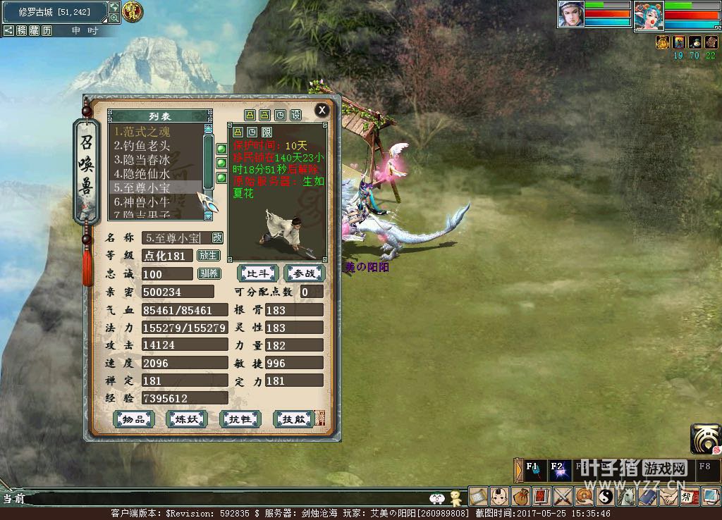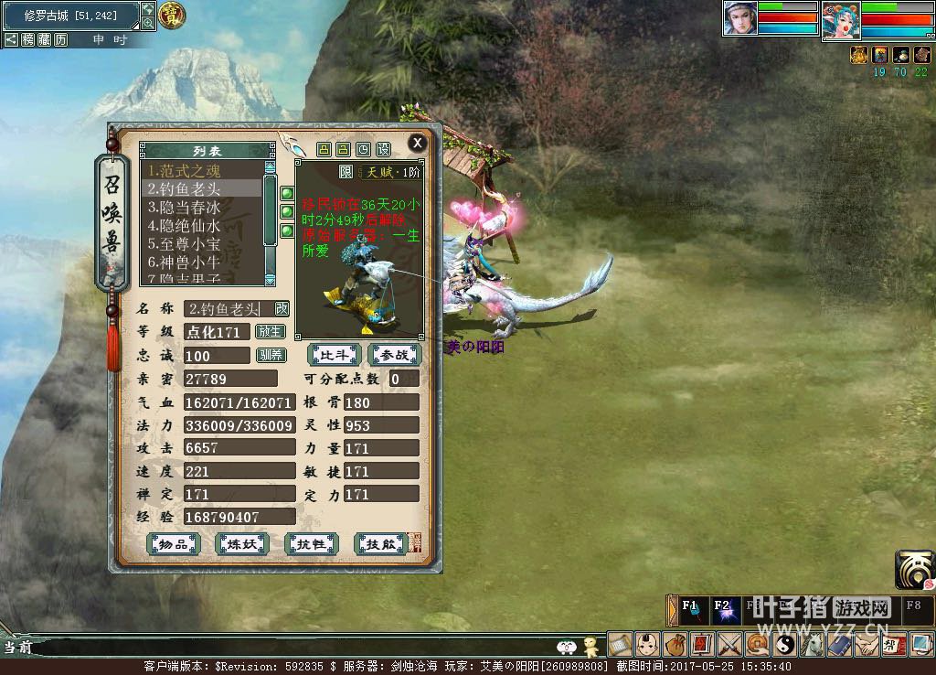 我只是一个红尘中普普通通的女子。坐看风吹叶落,聆听细雨晨风。所幸,我认识了你----大话西游。 很多男孩子都有个游戏梦,但其实很多女孩子也是。以前还小,喜欢去网吧,然后就看到很多天人都玩这个游戏。 很喜欢大话的人物角色,男的帅气飘逸,女的妩媚美丽。那时就很想玩,不过嘛,小时候也没什么钱,听说还得花钱买点卡,就跟自己女同学玩一个号。 长大就是把小时候很想做,但是没钱做的事都做了。去年不上班了,自己开店。在店无聊,看到大话西游2就想回来玩了。也算完成了自己小时候的愿望。 本期主人公:剑烛沧海艾美阳阳游戏资料