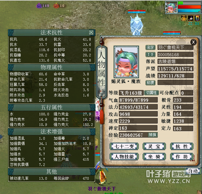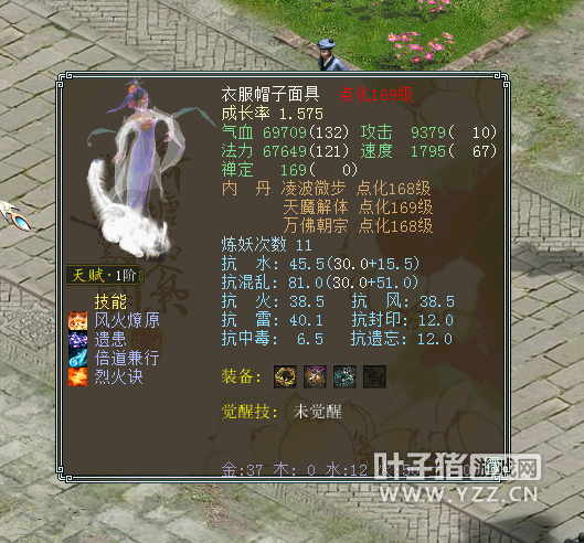 五.女魔(3400) 双忽视卡1000+灵宝150+果子300+隐火冰块300+黄金100+精卫150+1.7忽视武器500+默契配饰200=2700; 44天赋女魔号700。 |