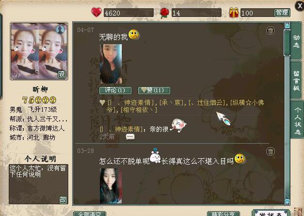 什么叫赠人玫瑰手有余香?这一男一女两位玩家非常好的诠释了这一点~ 一切,就从一个赞开始: 一个女生的空间,此时有人路过...