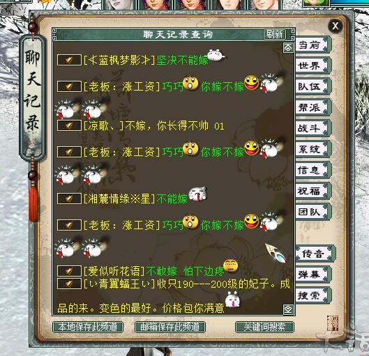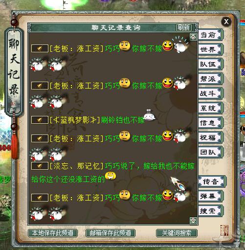 大话虽然是款老游戏,但一直还是有新人进入的,像今天的这位霸占铃铛频道的玩家,就是新人无疑了... 先看看他干的事,再说为什么是新人吧! 这种示爱的方式如果放在十五年前,是可以引起世界哗然的,而现在,除了几个插科打诨的之外,其余人都已经司空见惯,而会用这种方式的,也必定是新玩家了,因为这种做法实在是...不是成年人做的事了... <<<点击进入大话西游2论坛讨论>>> >[编辑:韦小贝]