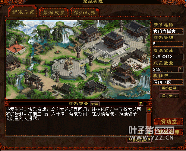 春暖花开服务器留香居帮主:清雨飞韵 当兄弟接新娘 大话拉近了我们的距离 我叫清雨飞韵,是一个普通玩家,游戏里没有特别亮点的战绩,可是和许多玩家一样,我玩这款游戏玩了很多年,至于为什么能坚持这么久?我想每个玩家心里都有不同的答案。 我清晰地记得2008年3月12日植树节那天,我开始了我的大话之旅。怎么说呢,当时植完树去网吧,网吧的人全是玩大话的,我在好奇之下也开始探索这个神奇的世界。